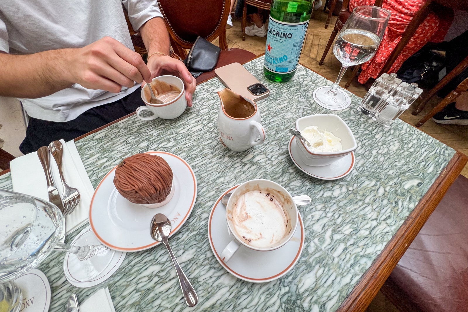 Next up: refreshments. Stroll down the Rue de Rivoli to Angelina, an ornate historic tea room dating to 1903, where the specialty is oh-so-dark and creamy hot chocolate. Try a signature Mont Blanc pastry as well, with decadent chestnut paste and fluffy whipped cream.