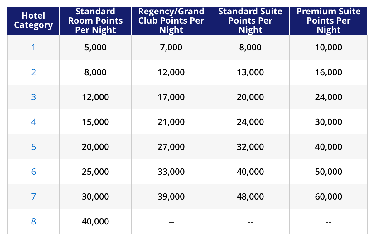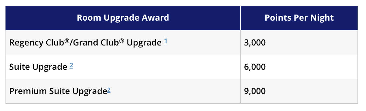 And, here's how many points it takes to upgrade a paid rate to a Club room or suite (before the March 2020 award chart change).