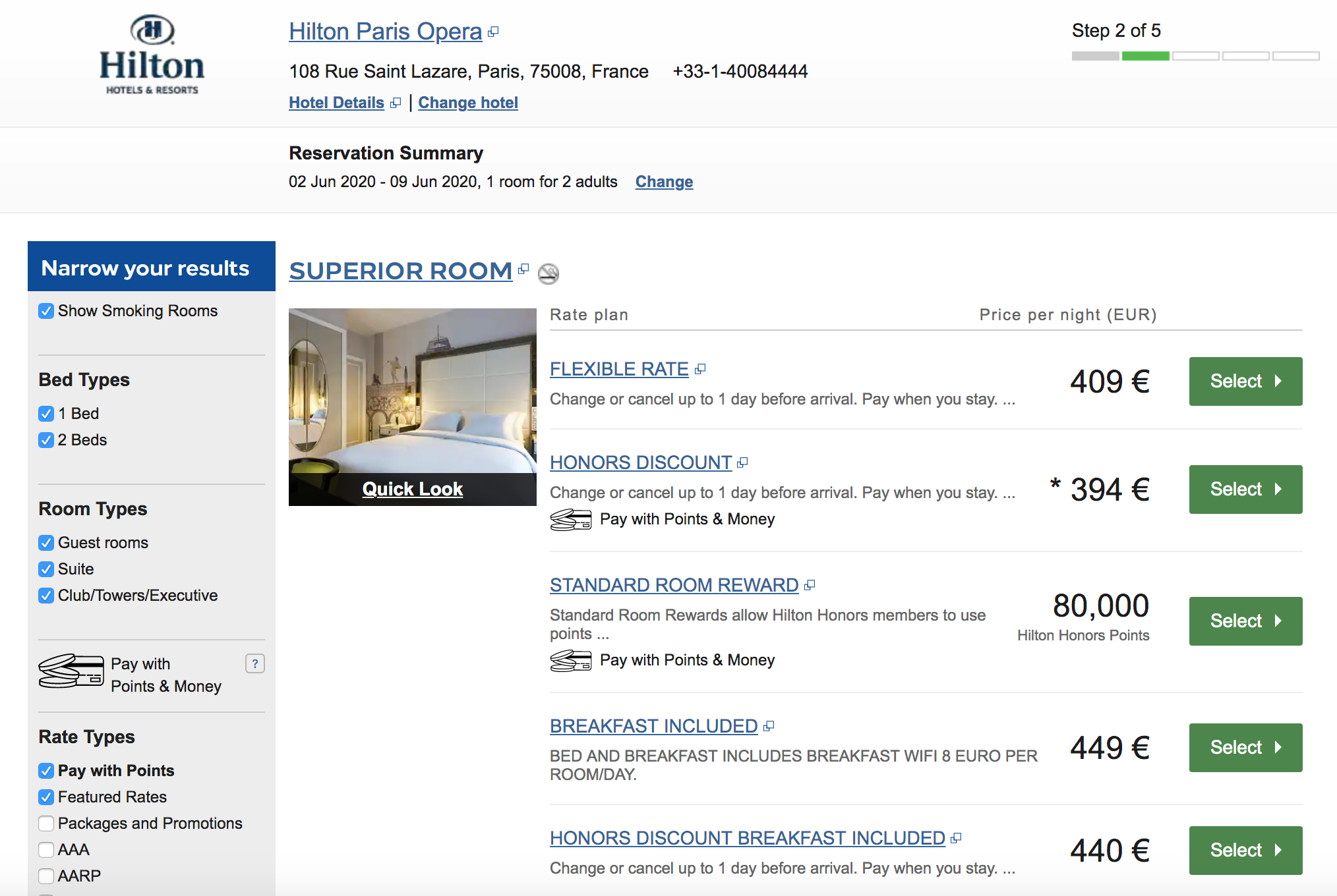 I then signed up for the World of Hyatt Credit Card to take advantage of the welcome bonus (we'll apply the points to a future trip) and the elite points-earning bonus on the Paris stay. (The current welcome bonus is 30,000 Bonus Points after spending $3,000 on purchases within the first 3 months from account opening. Plus, up to 30,000 more Bonus Points by earning 2 Bonus Points total per $1 spend on purchases that normally earn 1 Bonus Point, on up to $15,000 in the first six months of account opening.)