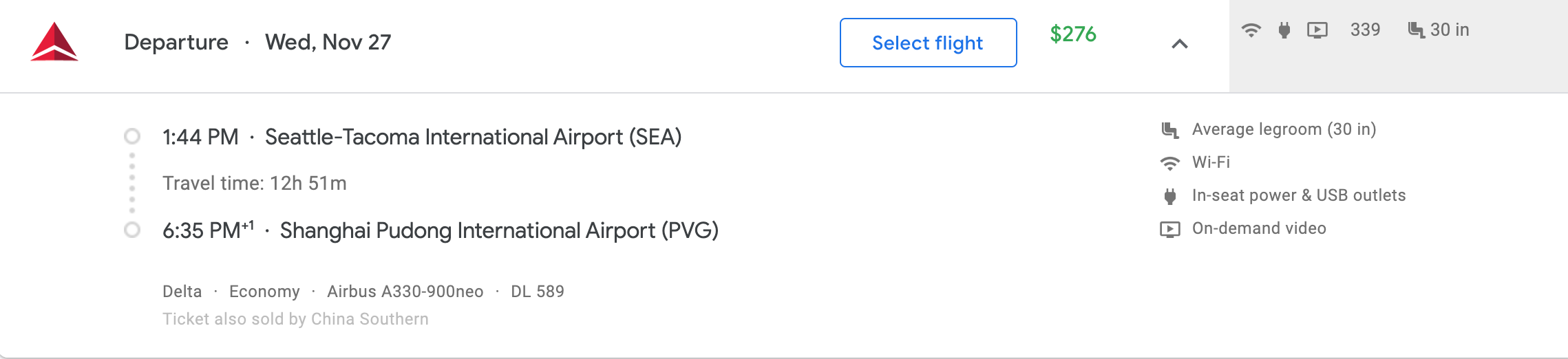 - Seattle (SEA) to Shanghai (PVG): A330neo