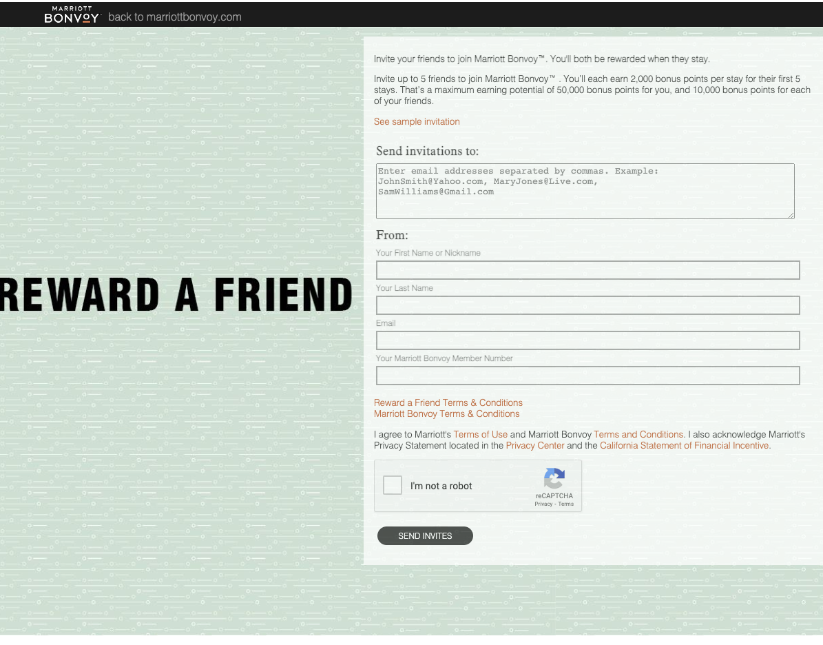 Find the Marriott refer-a-friend page and click "Send Invites" in the graphic at the top of the page.