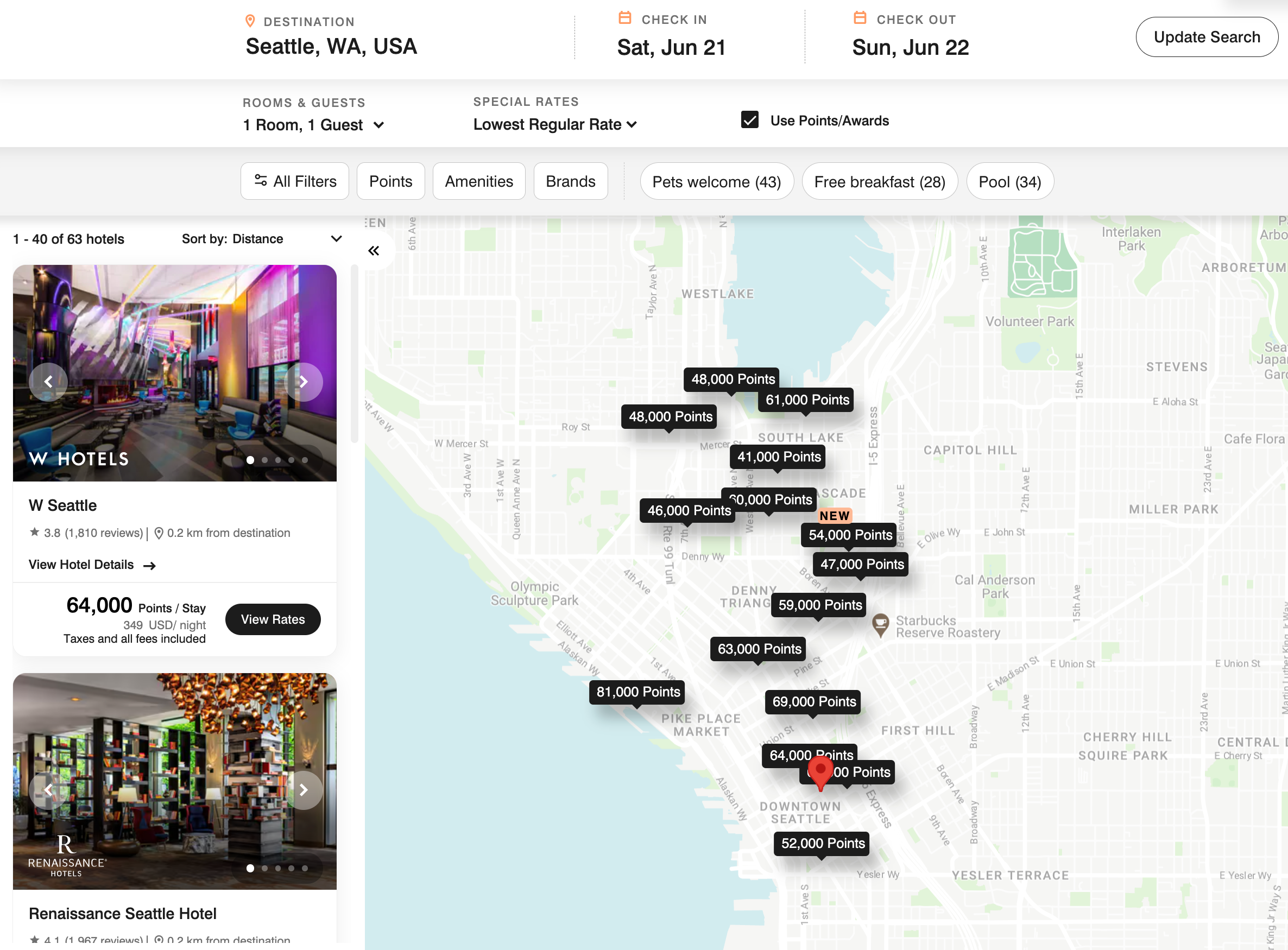 When searching for a hotel in Seattle, the results are overwhelming. Below the numbers of rooms and guests, click on "All Filters."