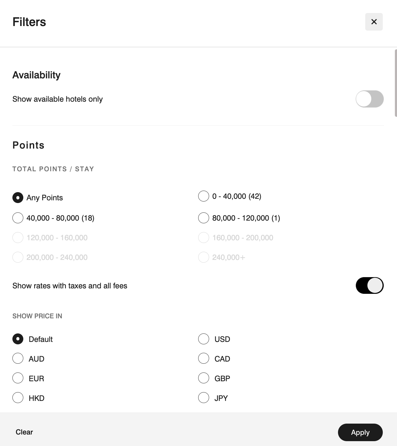 From here, you can filter for hotels in certain point bands. Choose the band that aligns with your free night award's maximum value.