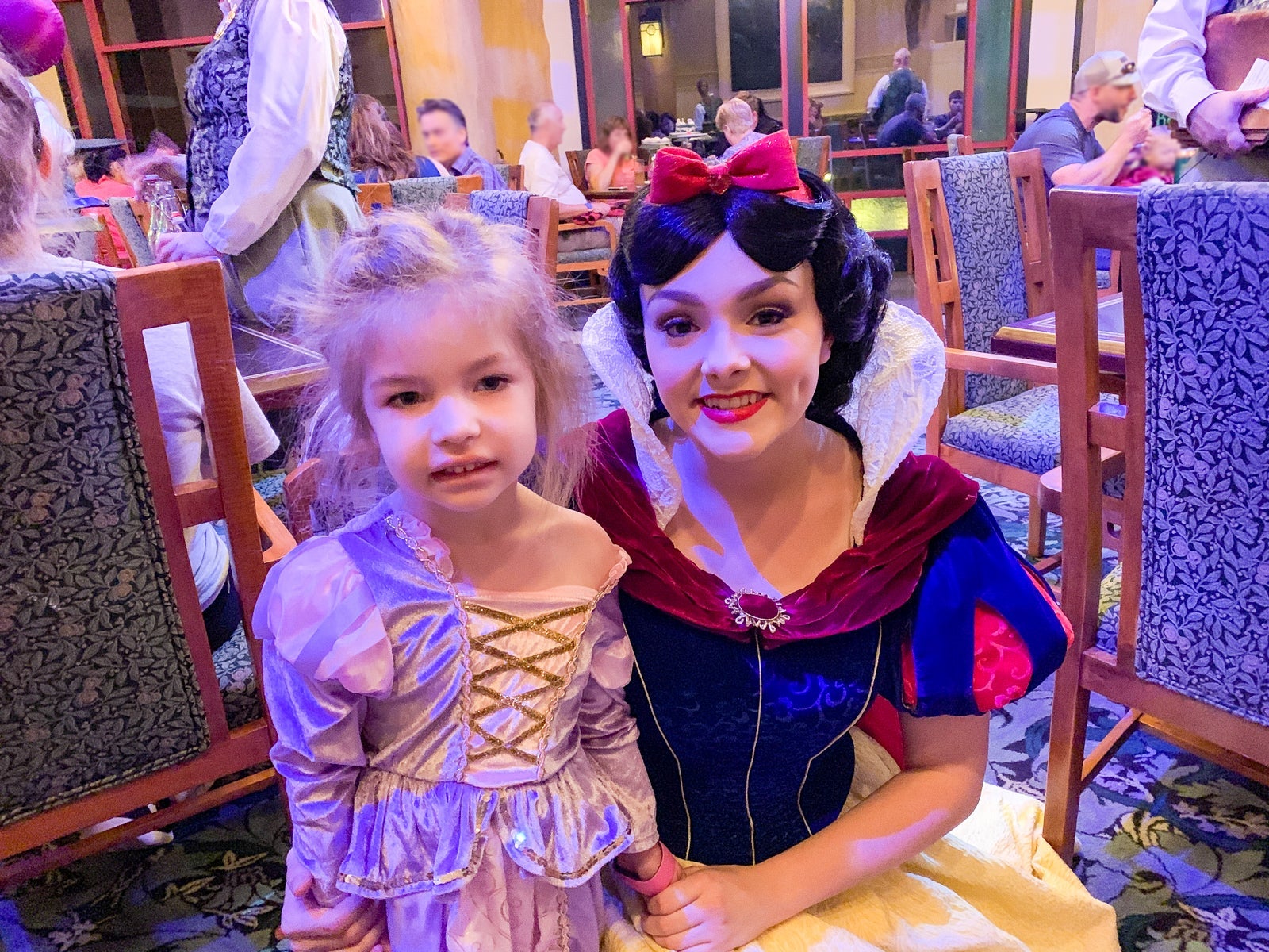 My 9-year-old humors me with occasionally meeting Disney characters with her younger sister, but she is pretty much over it. However, she wanted to meet the Evil Queen. When the queen complemented her choice of wearing purple and beckoned her to follow, my tween was all in.