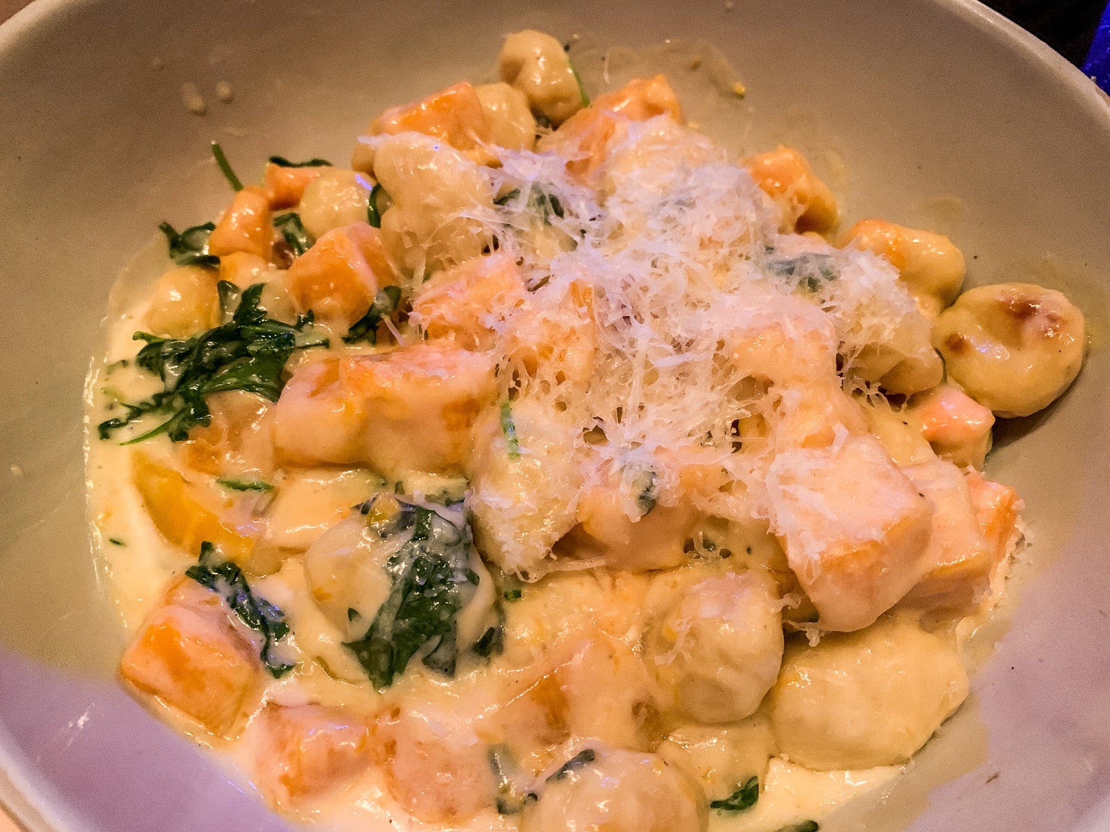 We had eaten a lot of food on this trip, so I went for the Stroll Through Nature, which was truly decadent (even my kids loved their bites). While it was delicious, it was certainly not a "light choice" as I intended when I saw words like squash and arugula. There was lots of cheese and cream and richness all around. Here are tips for eating healthy at Disney, if that's your goal.