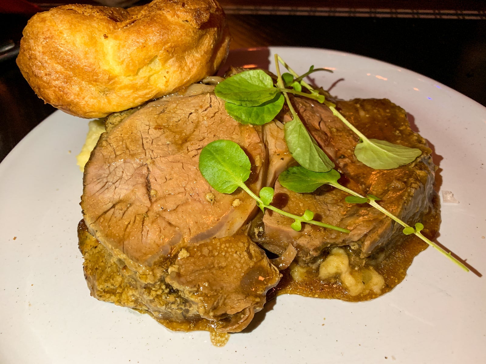 My husband wasn't pretending to go for healthy or light and opted for the rib roast with horseradish mashed potatoes. He gave it two thumbs-up.