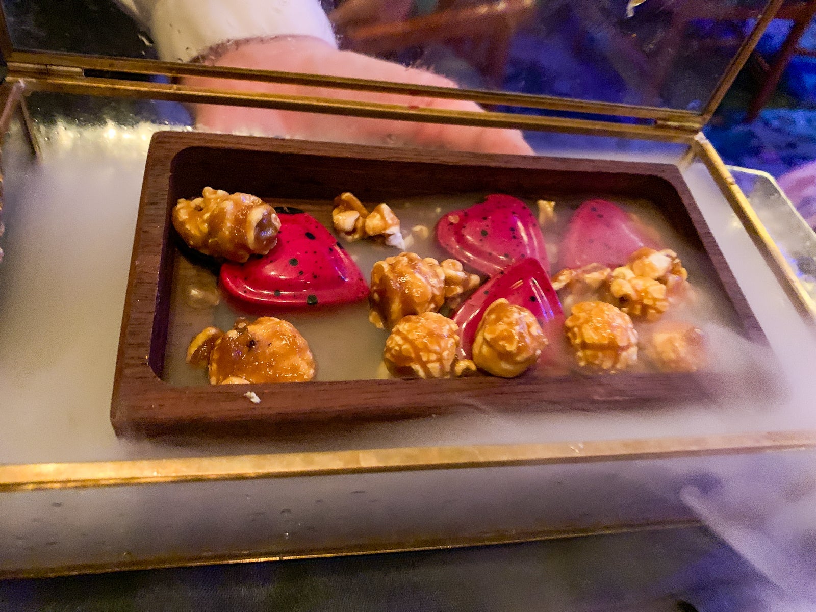 Finally, you'll get the Hunter's Gift to the Queen, which is comprised of cracked maple popcorn and ganache heart served from a smoking box. We did not bother to eat much of this dessert, but the presentation was five-star.