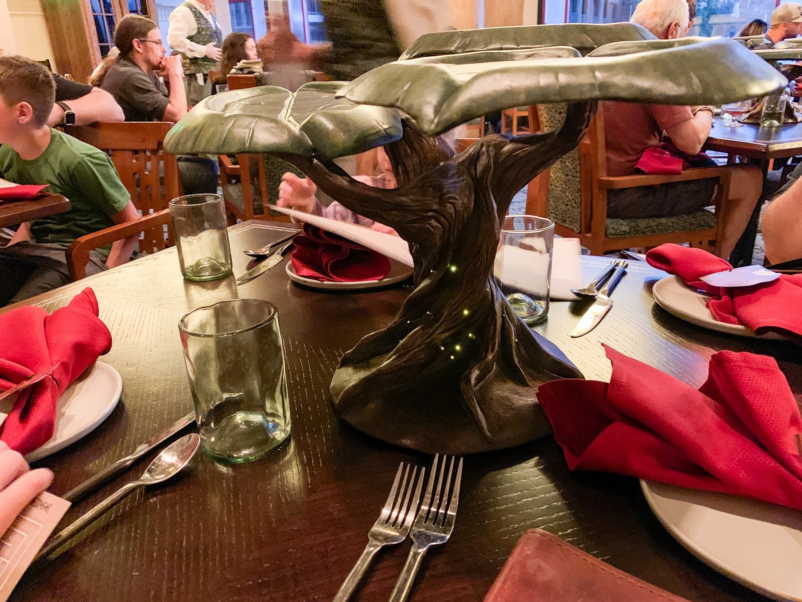 Our dinner was set in a small space at Wilderness Lodge with "enchanted" trees and lights all around. Dinner in this setting feels much more intimate than, say, somewhere as loud and massive as Chef Mickey's. The vibe was quaint and happy -- almost like we were in a cartoon-ish cottage in Germany.