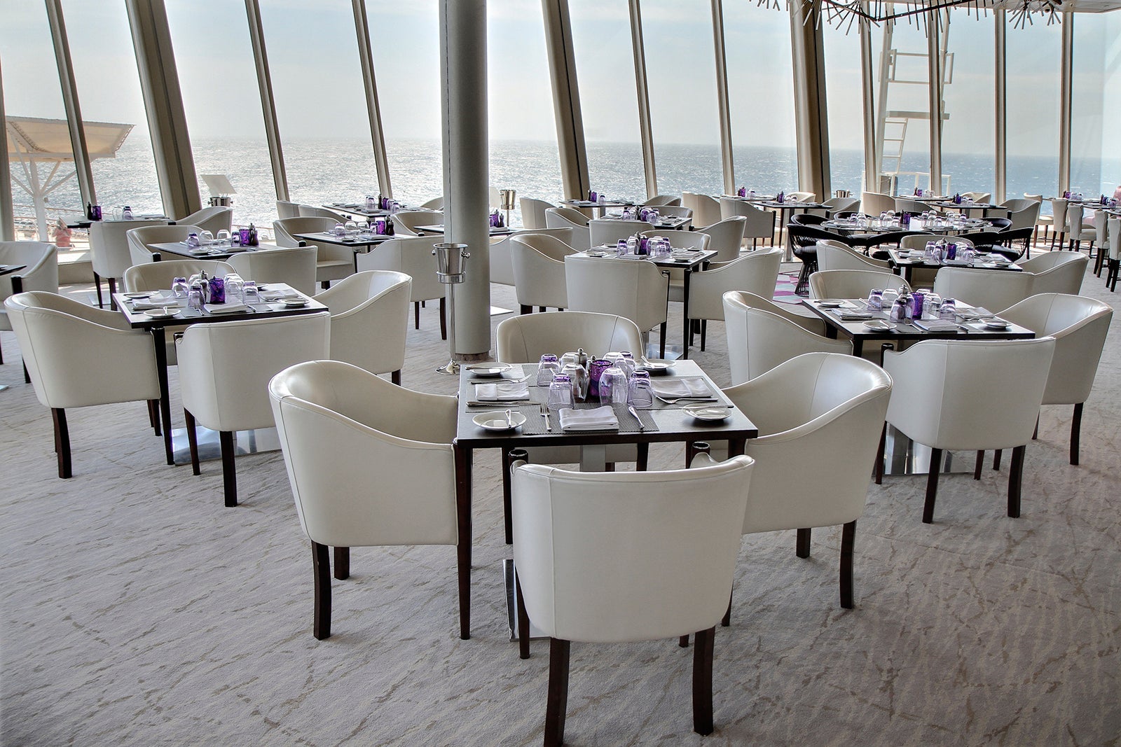 Sky-class passengers also get access to exclusive venues, such as the Coastal Kitchen restaurant for three meals a day, the suite lounge with complimentary evening drinks and snacks, and the suite sun deck. Room service is free of charge 24/7.