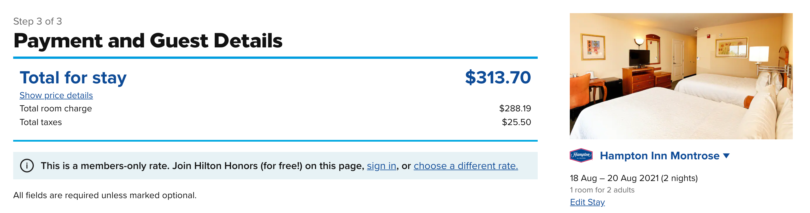 The following two nights, they wanted to stay in Montrose. I found a solid property — the Hampton Inn Montrose.