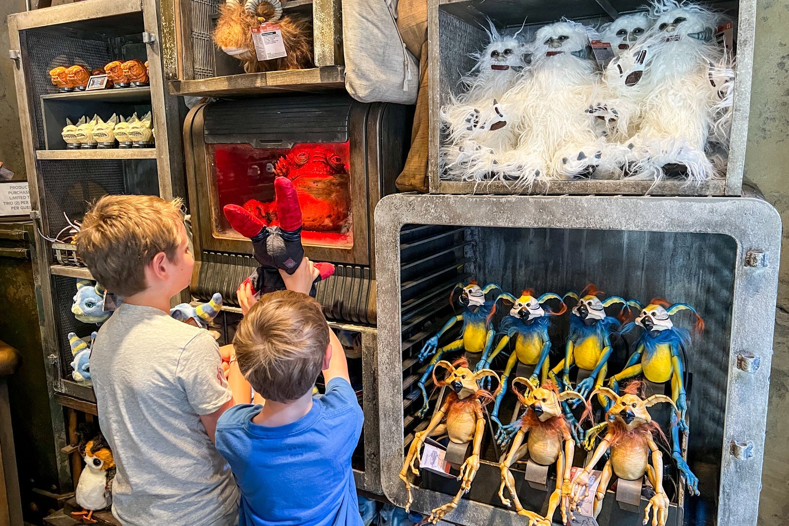 It's not "Star Wars" without a few alien creatures in the mix. Spot all sorts of species around Batuu, including a dianoga lurking in a tank near the Marketplace "refreshers" (that's Batuuese for restrooms), a baby sarlacc in Dok Ondar's Den of Antiquities and a snoozing Loth-cat in the Creature Stall.