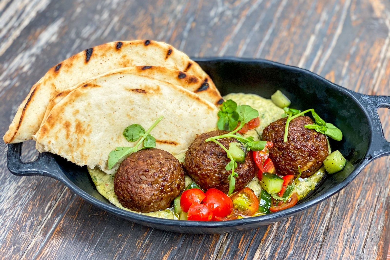 At Docking Bay 7 Food and Cargo, Batuu's main quick-service spot, chef Strono "Cookie" Tuggs has docked a food freighter and serves his specialties in the hangar below (just look for the ship high above the land to find this spot). Menu highlights include the Smoked Kaadu Pork Ribs and the plant-based Felucian Kefta and Hummus Garden Spread (a favorite even among meat-eaters).