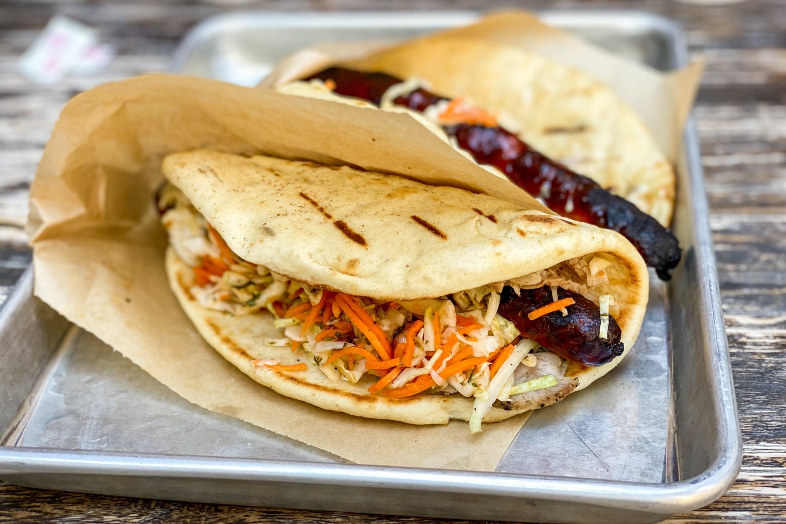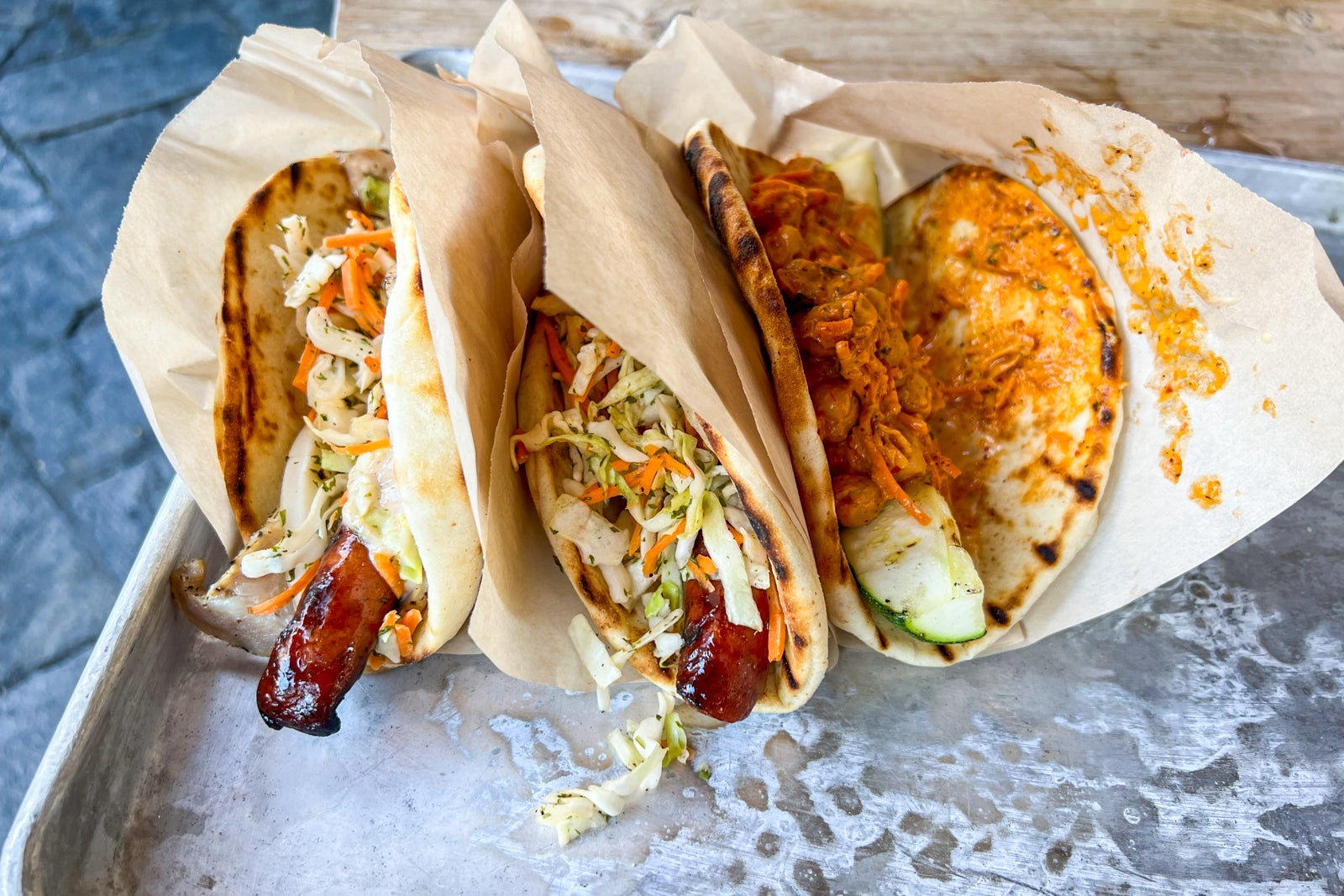 Vegans and vegetarians get solid plant-based options too — the Zuchii Wrap at Disney World swaps sausage for a grilled zucchini spear topped with a spicy chickpea slaw and at Disneyland, the Ronto-less Garden Wrap made with Impossible meat is another cult favorite.