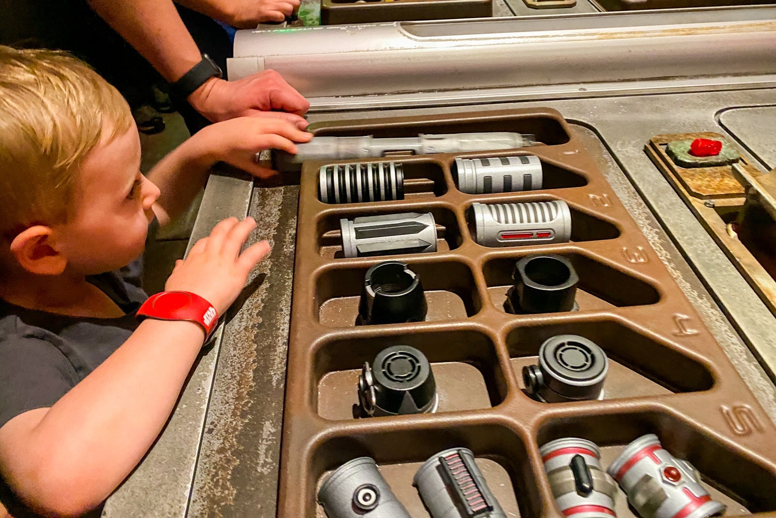 For a far less expensive option, a Choose Your Destiny lightsaber-building station is available at Tatooine Traders at Disney's Hollywood Studios and the Star Trader in Tomorrowland at Disneyland Park. Here, you can build your own lightsaber for a starting price of just $29.99.