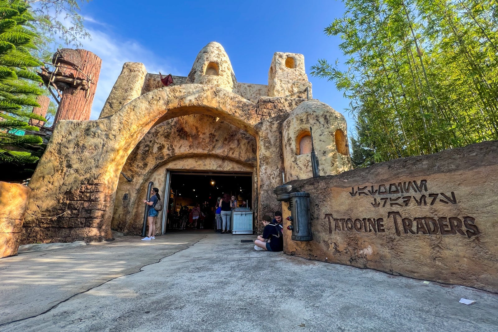 The land invites immersive role-play — signs are written in Aurebesh, the main alphabet used in the "Star Wars" galaxy. The citizens of Batuu (aka Disney Cast Members) greet you as a visitor to their planet ("Bright suns, traveler") and play dumb if you refer to Earthly, "off-planet" places.