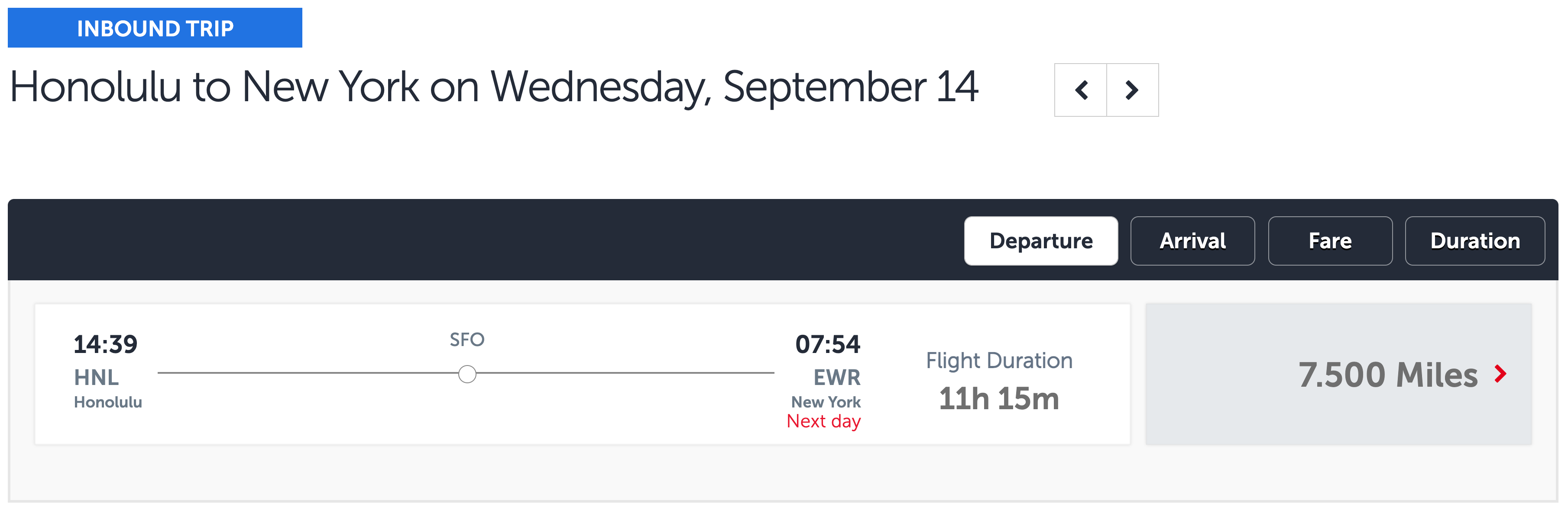 This is because all domestic award tickets — including those to Alaska and Hawaii — cost just 7,500 miles one way in economy and 15,000 in business class. This includes ultra-long-haul flights from the East Coast to Hawaii and transcontinental flights equipped with lie-flat United Polaris business class seats. Of course, you'll need to find award space first.
