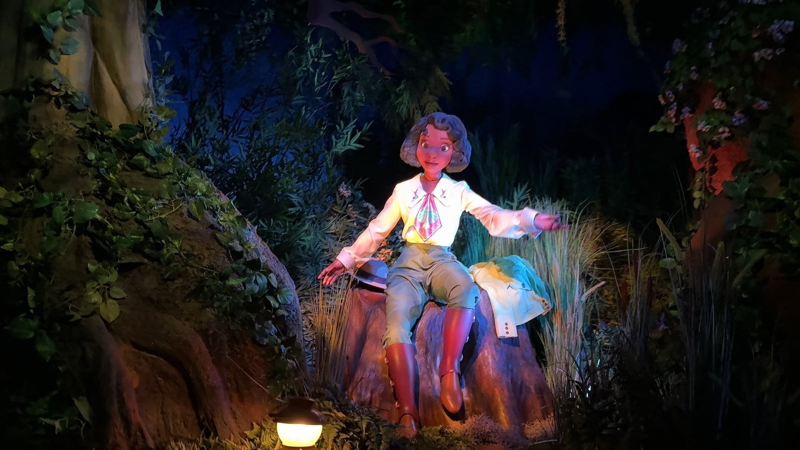 During the ride, you'll encounter dozens of new and familiar characters in the form of state-of-the-art animatronics, like the magical Mama Odie, Prince Naveen, Tiana, Louis and dozens of musical critters.