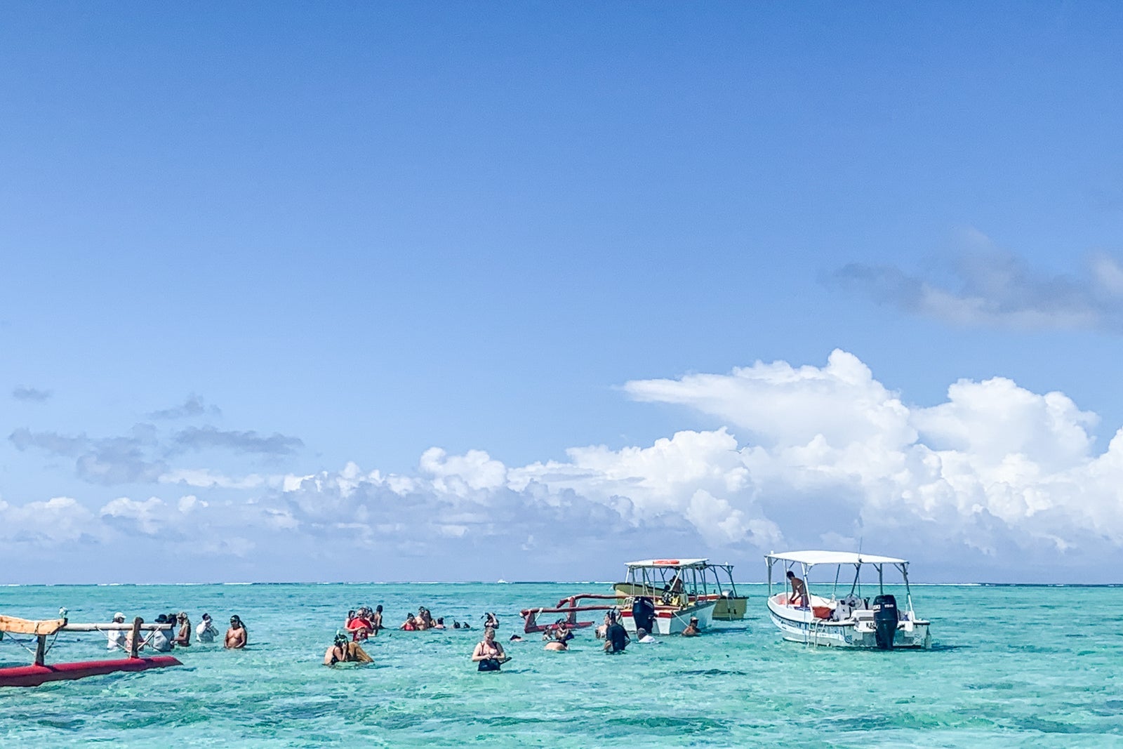I got to swim and snorkel with sharks and stingrays and then have lunch on a little motu, or small island. Full-day trips like I took start around $82.