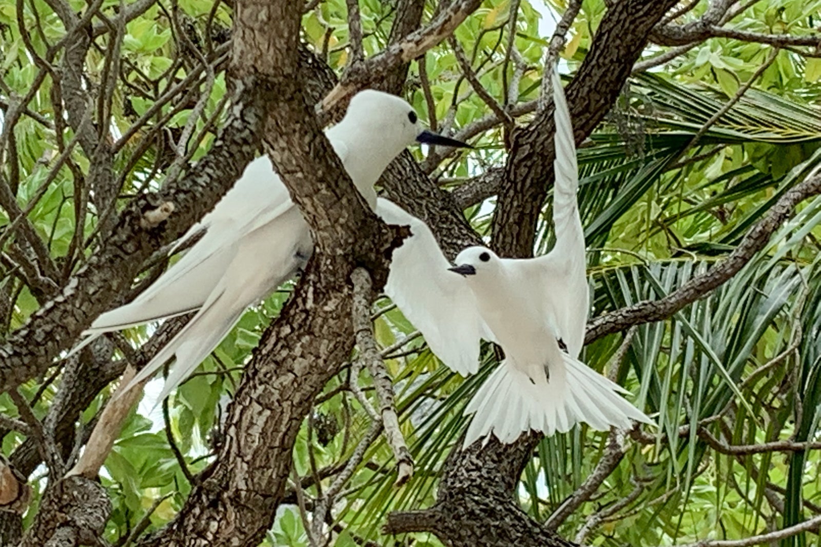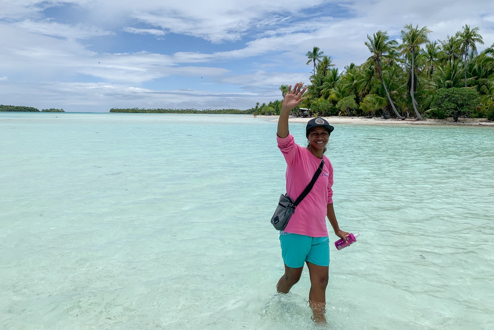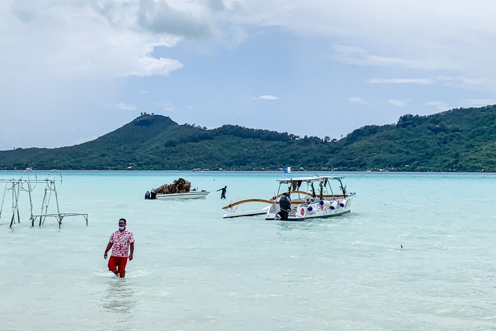 Lunch was served on a spectacular motu we got to wade to from our boat. The mini-island was surrounded by baby reef sharks and pink-hued sand. There were palm trees and lots of interesting local birds, as well as a home-cooked Polynesian meal set up for us. The food included a few raw fish dishes and coconut bread.