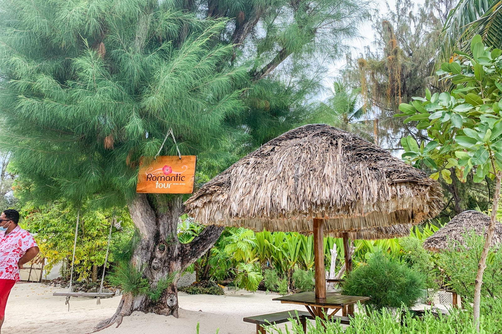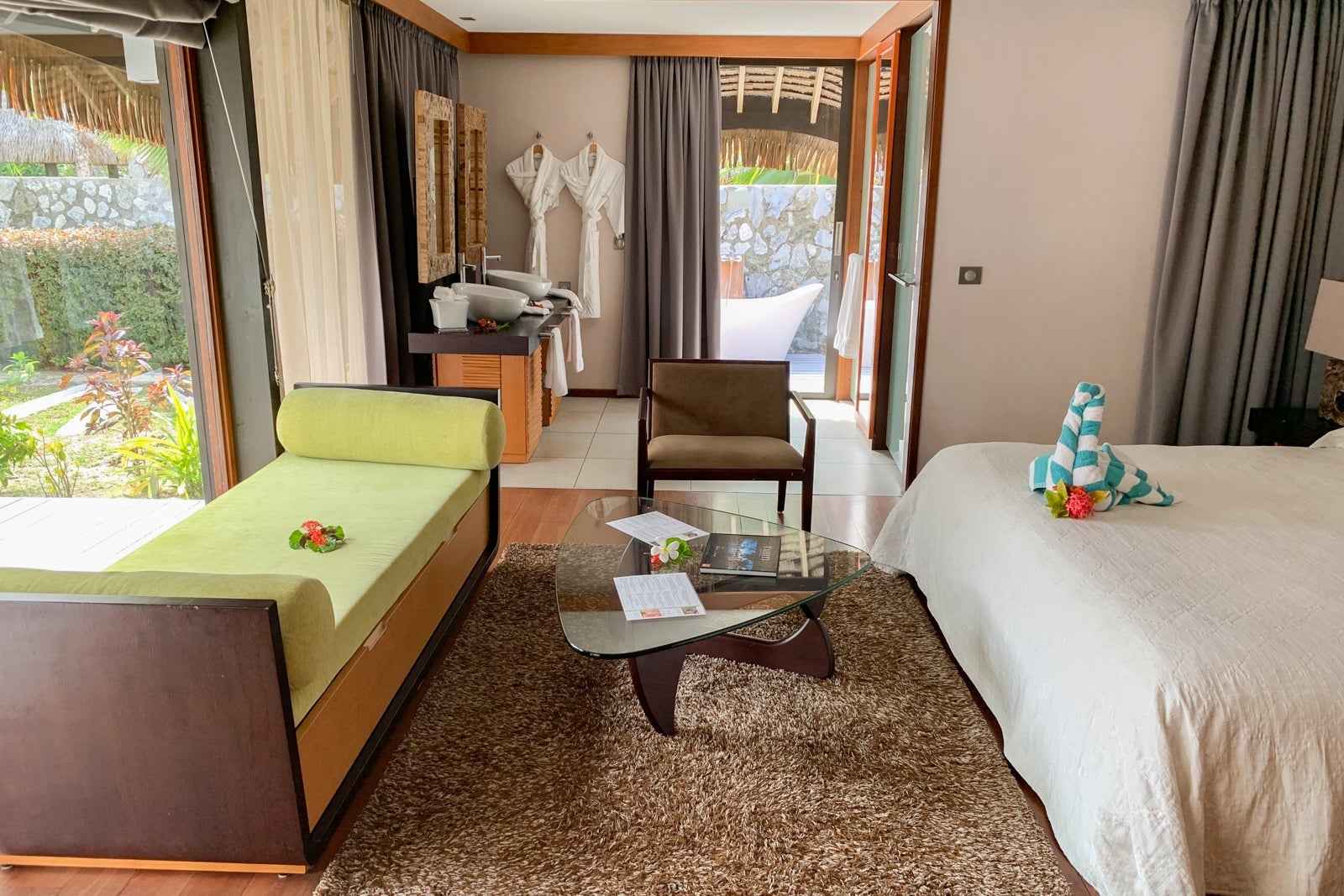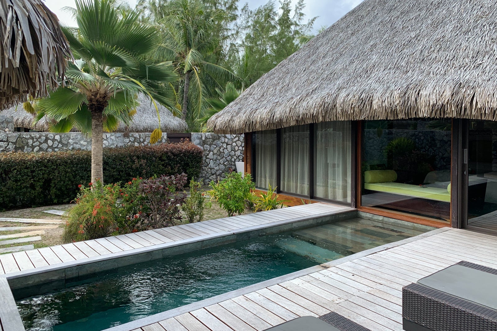 I stayed in a small beach bungalow with a private plunge pool at the Kia Ora Resort and Spa, but the resport also has some overwater bungalows.