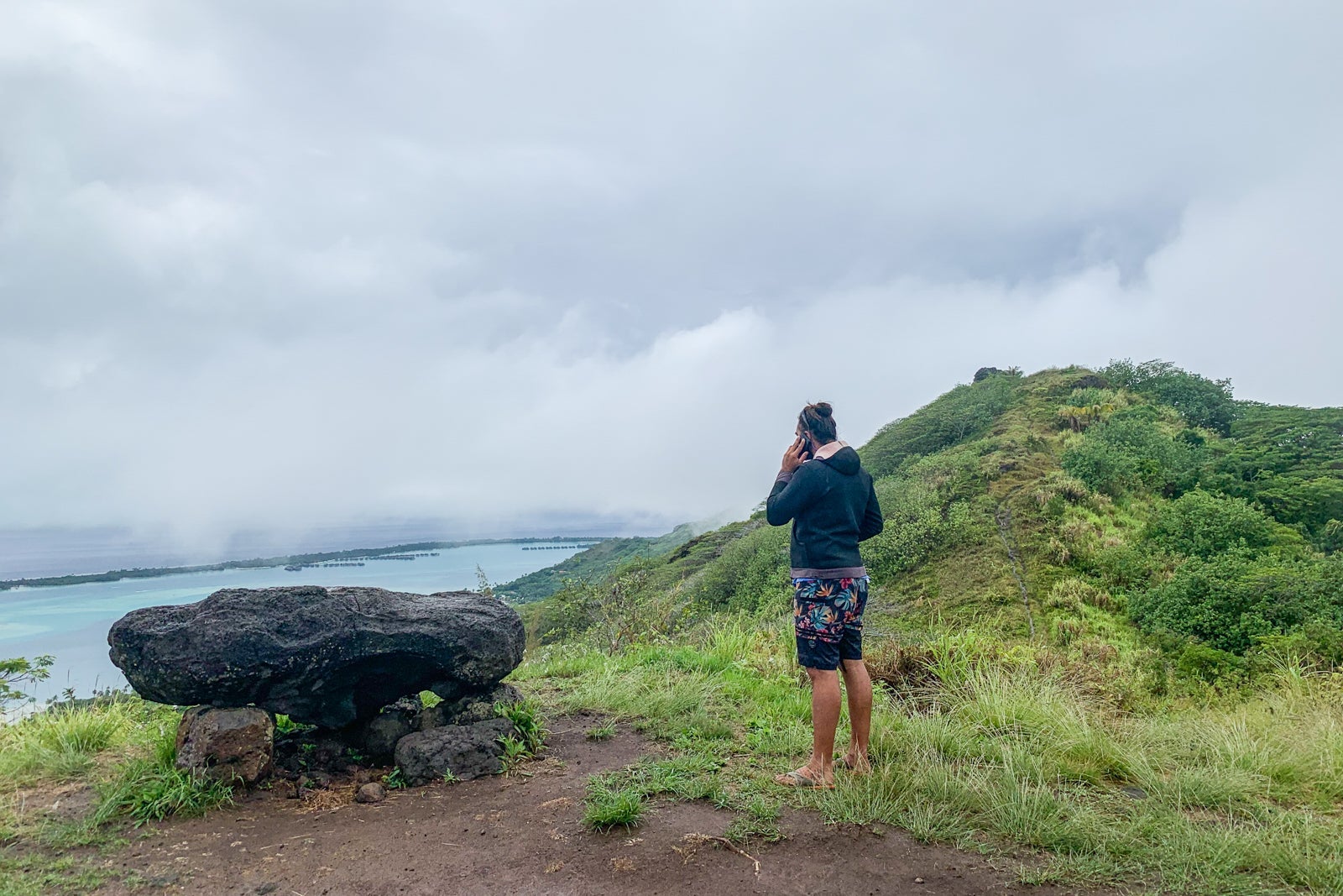 After about 40 minutes of navigating the muddy trail, which is one of several reportedly created by Allied forces during World War II, we reached the top of magnificent Mount Popoti, where panoramic vistas of Bora Bora's lagoon awaited us.