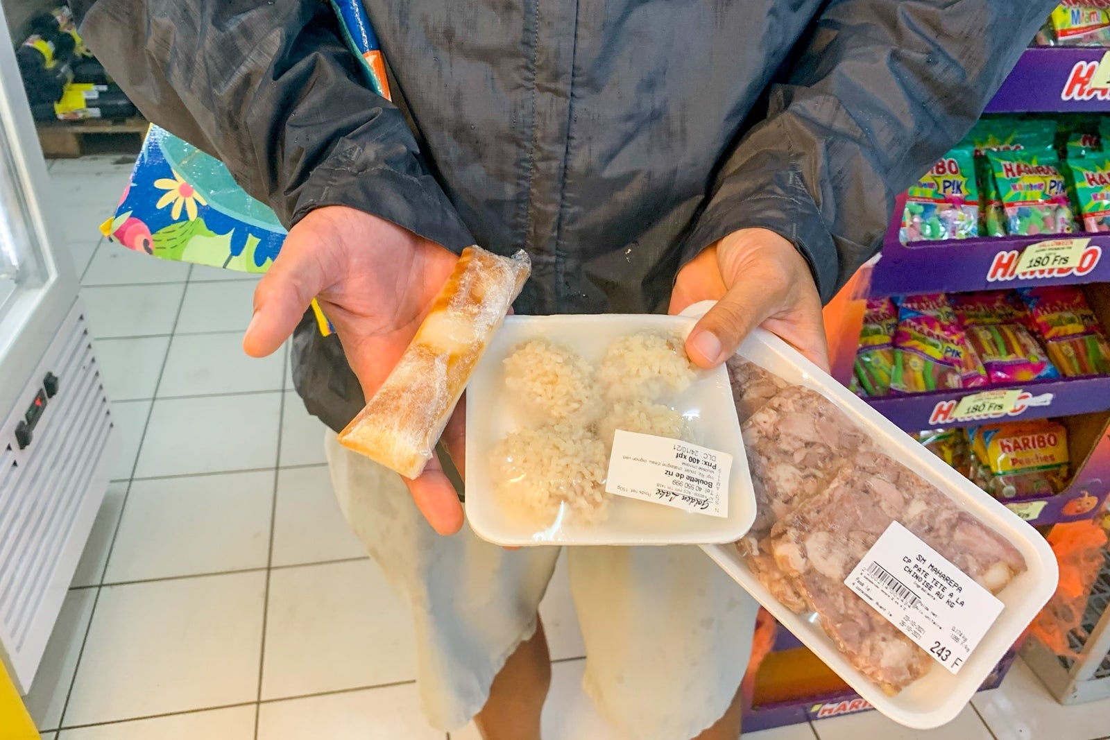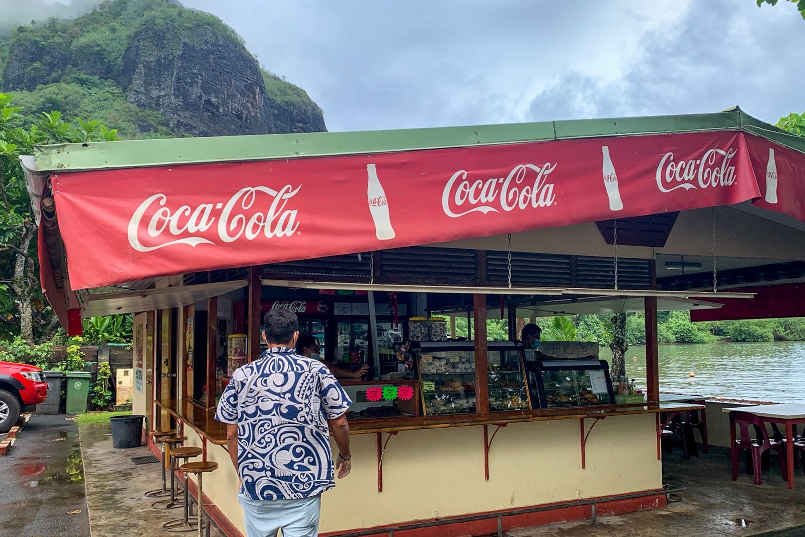 He picked me up at the Terevau terminal ferry dock in Moorea and took me on a driving tour of the island. Unfortunately, it was pouring rain, so Hall couldn't take me to the many food trucks offering local treats that day. We did get to stop at a few mom-and-pop shops to pick up local delicacies, and we ended up having lunch at Hall's home in the hills of Moorea. It wasn't quite the food truck tour we both were hoping for, but I got some local hospitality instead, which turned out to be even better.