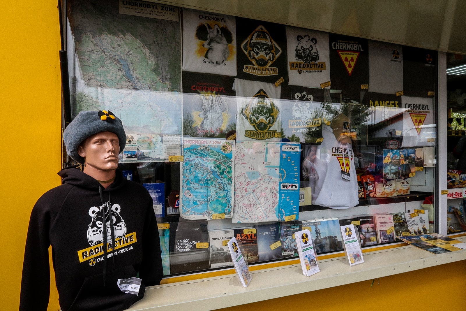 When we arrived at the edge of the exclusion zone, called the Dytiaky checkpoint, our passports and tickets were carefully checked. This area is around 19 miles from the power plant where the accident occurred, and souvenirs and costumes were available for purchase.