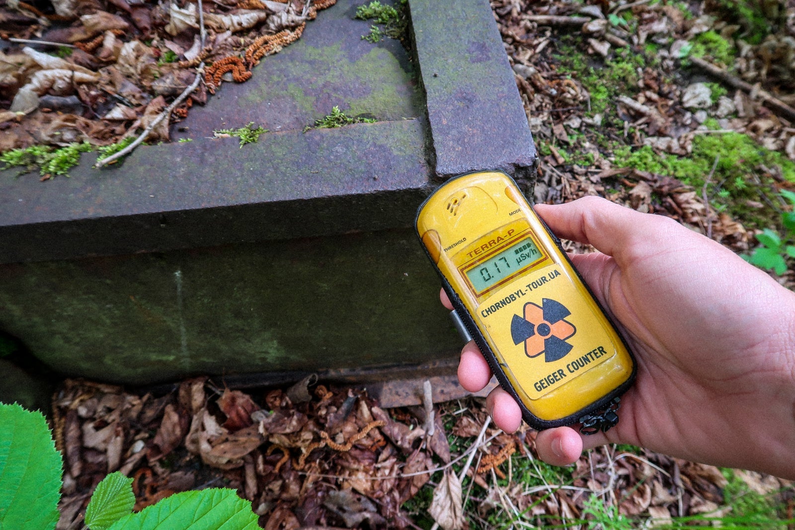 We then headed to the village of Leliv with its eerie, abandoned kindergarten facility. We started testing our radiation-reading devices. The amount shown below — 0.17 — is around the same as a chest X-ray.