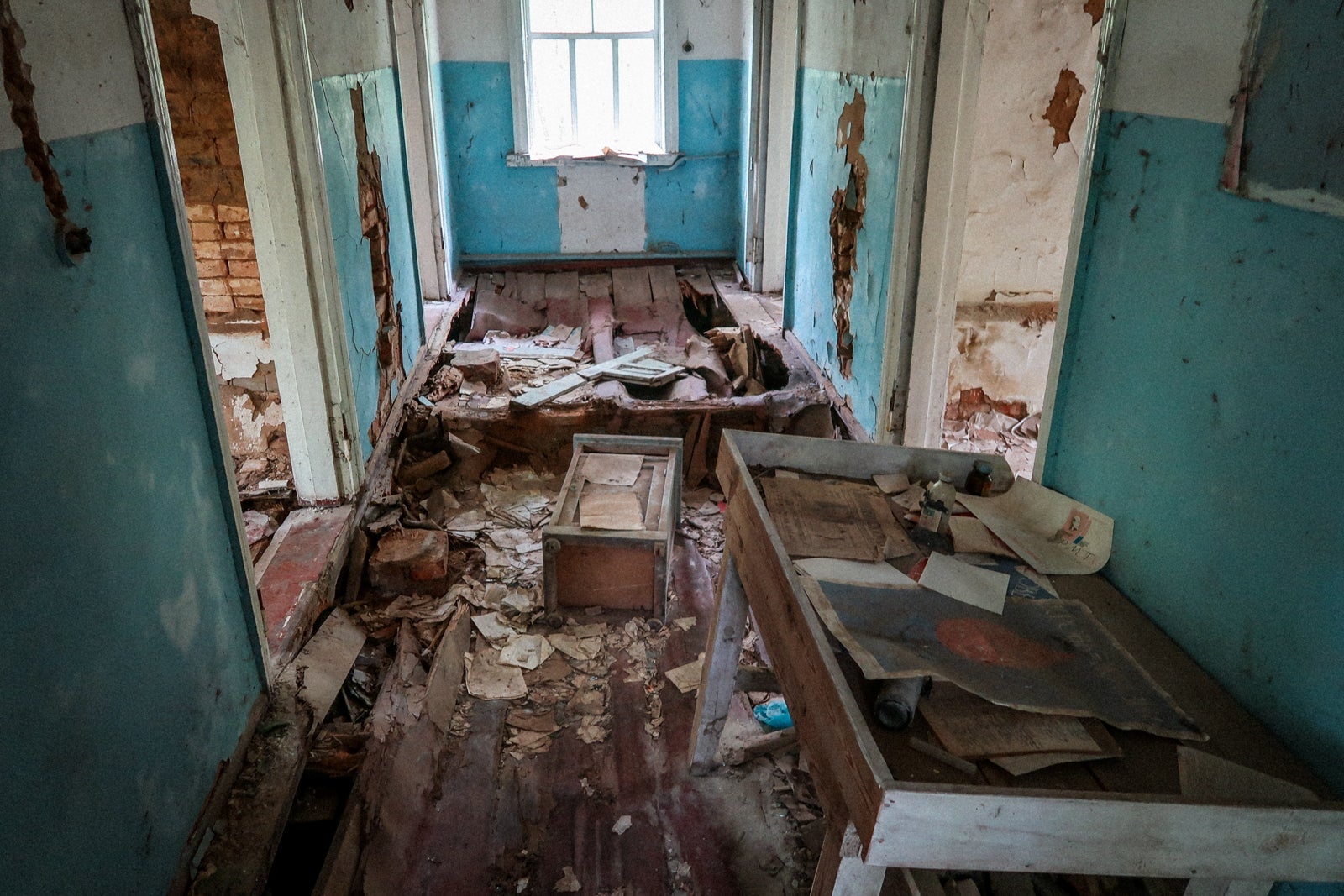 Since 2011, it's been forbidden by law to enter abandoned buildings, though our guides turned a blind eye at some points to this. This restriction was understandable when we saw how dilapidated they were: floors were literally caving in, so it was clearly not safe for groups to be trudging through.