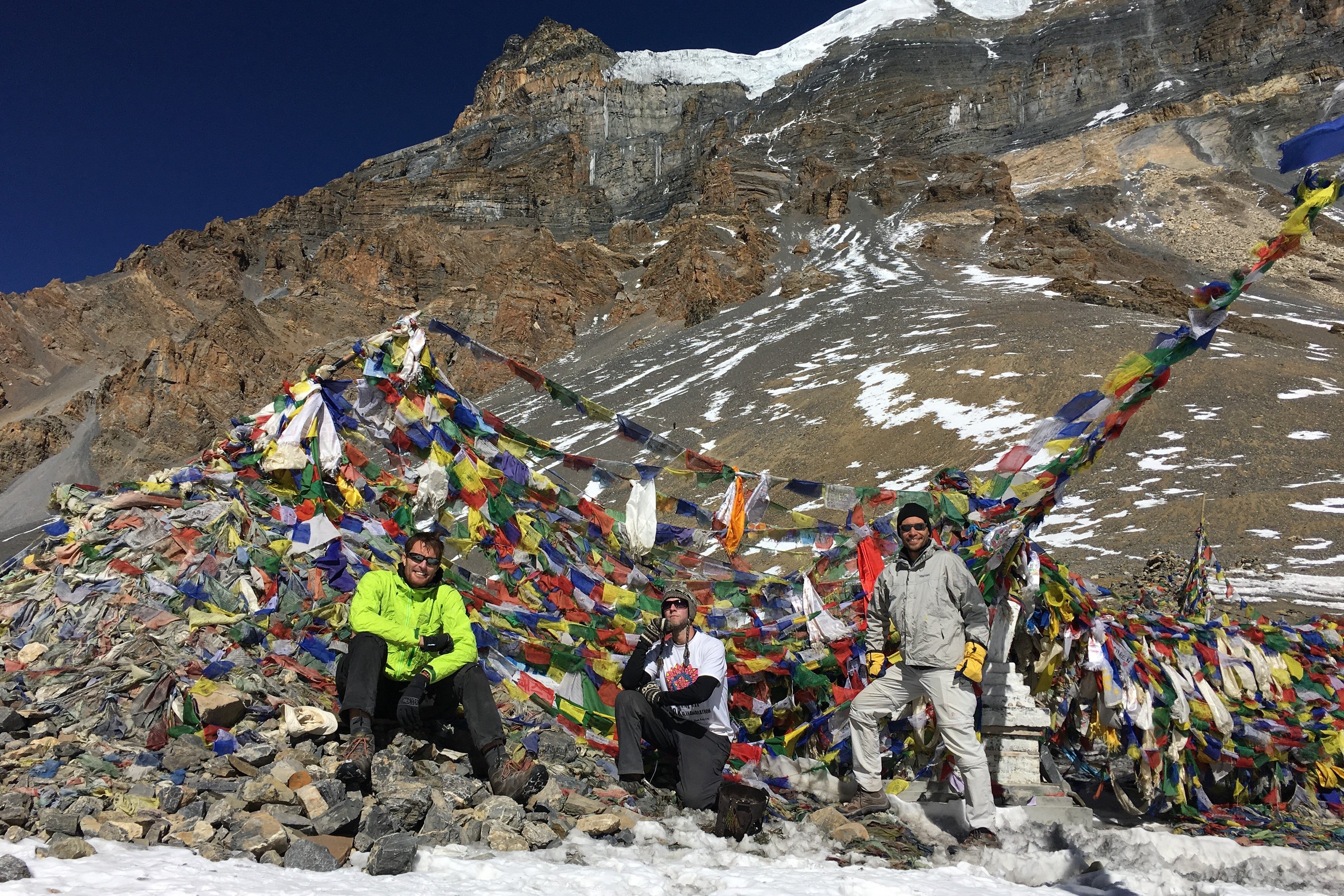 From left: Tyson, me and Chris at the top of Thorong La Pass - 17,769 ft. - the highest point of the Annapurna Circuit.