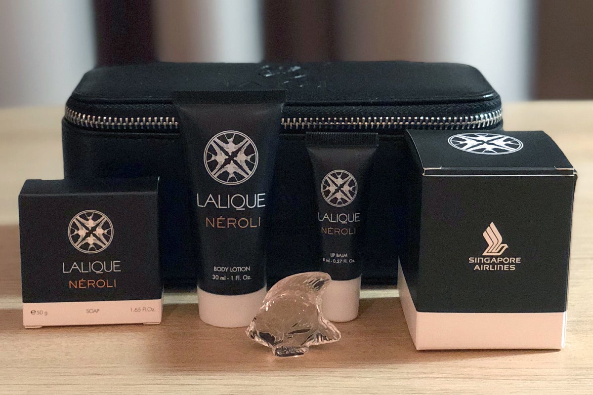The other console holds a lit vanity mirror, Bose noise-canceling headphones, a Lalique amenity kit (also only available on long-haul flights) and AC, USB and HDMI ports.