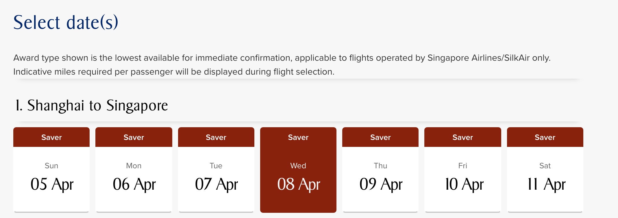 You really shouldn't get your hopes up about finding Saver-level Suites awards on any of Singapore's long-haul routes, but award space on the shorter flights to Asia and India is much easier to come by. For example, most days have at least one Saver-level award seat available from Shanghai to Singapore.