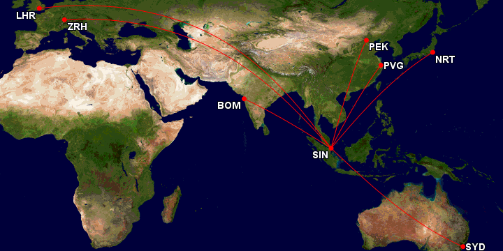 - SQ346 Singapore 1:30 a.m. departure → Zurich 7:50 a.m. arrival