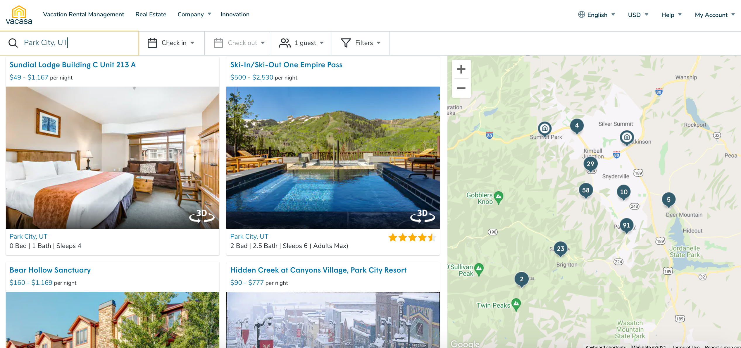For example, I searched for a "hotel" in Park City, Utah, for Jan. 8 to Jan. 10, 2025, for six guests and found a vacation rental available for $454 per night (not including taxes and fees).