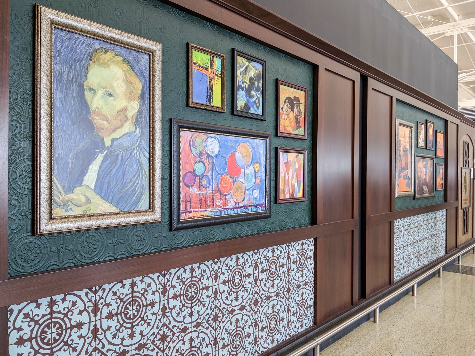 I started making my way toward the food court, which connected all the concourses. There was a relatively normal-looking restaurant decorated with Van Gogh and other modern-art prints. Interesting design choice.