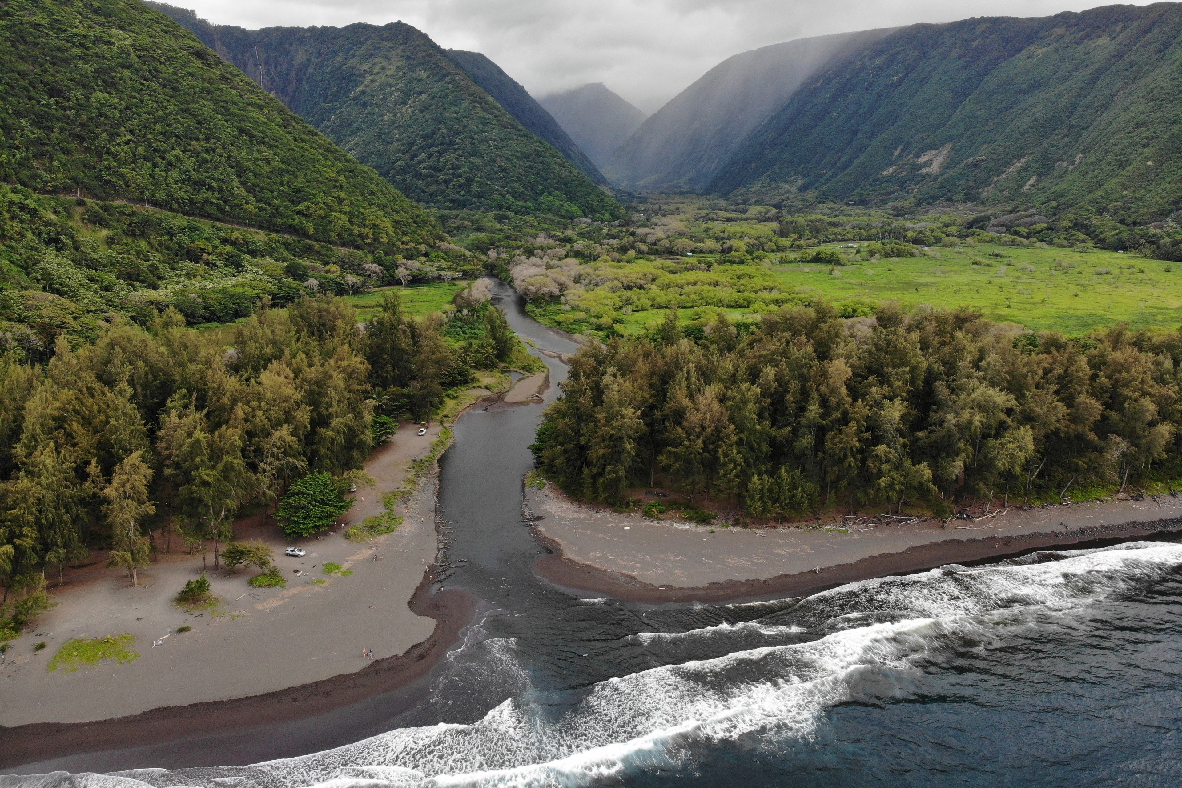 If you continue across the stream to the opposite end of the beach, a set of switchbacks will lead you up and over the mountain to the Waimanu Valley and some of the best overnight camping on the island.
