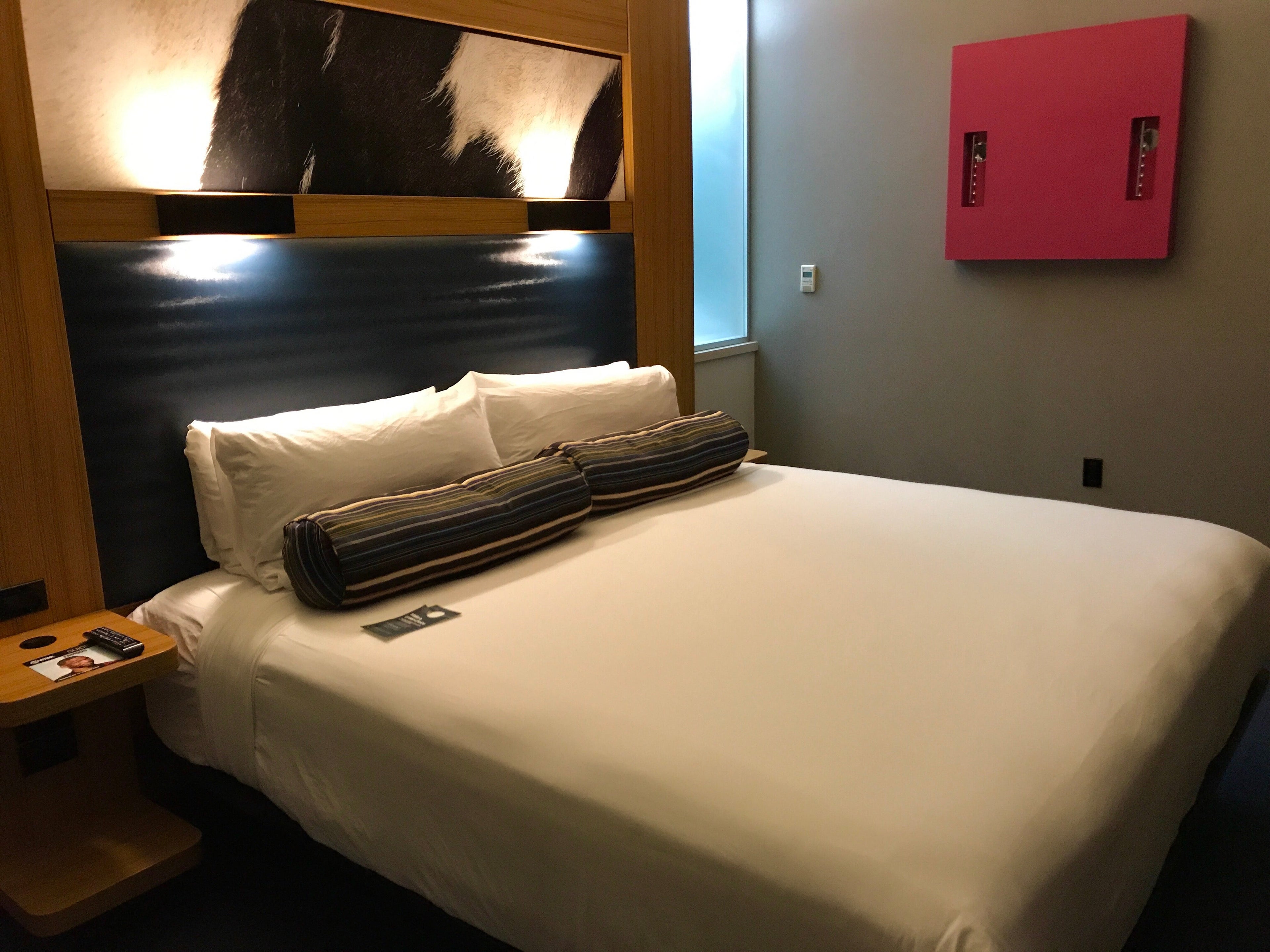 While we are on the topic of beds, the Aloft bed is not the same as the Westin Heavenly or W bed, though I generally sleep just fine in them. They are not usually hard mattresses, the pillows are plentiful, and the blackout curtains get a big thumbs-up from me.
