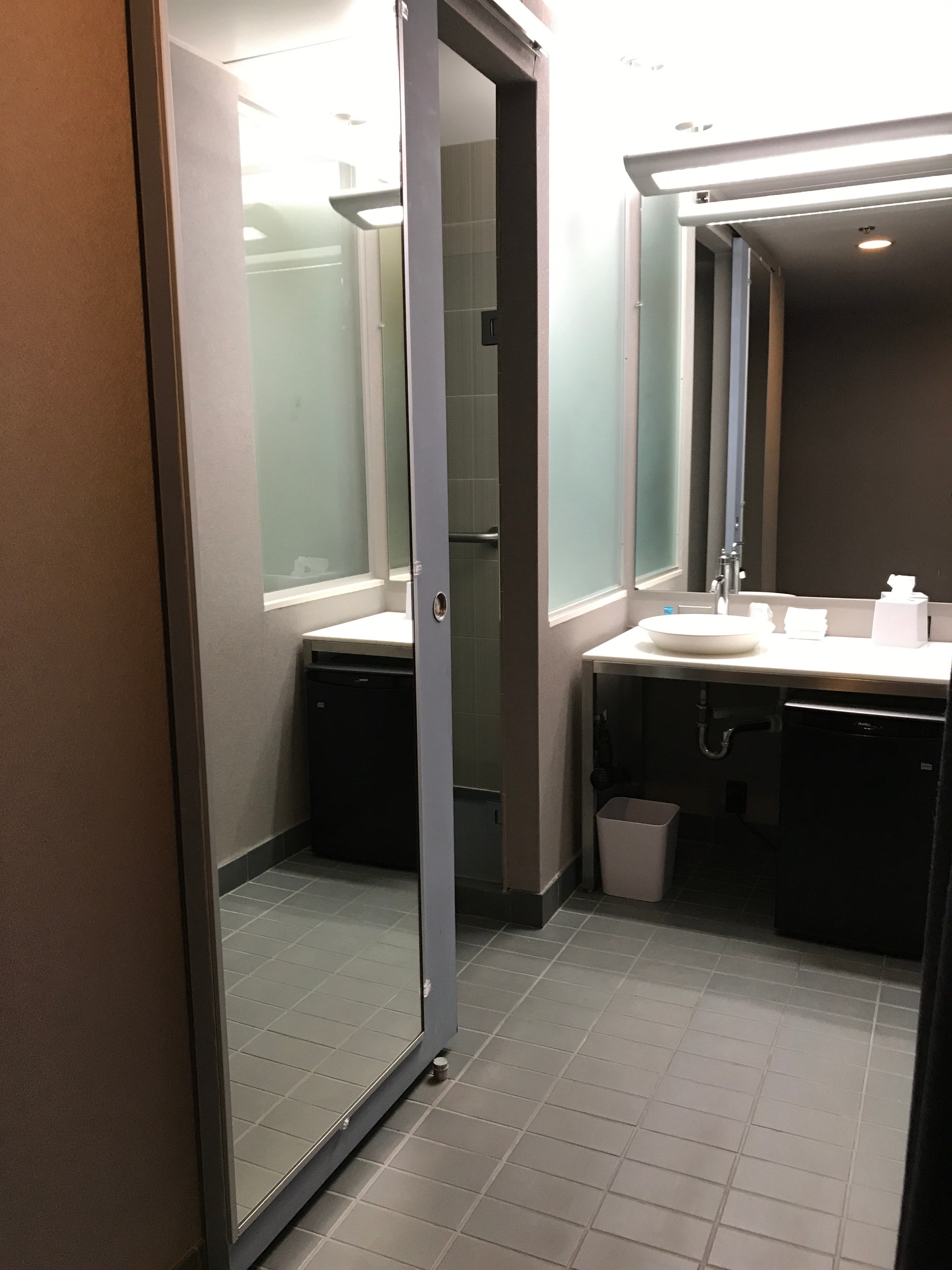 Part of it is the industrial styling and part of it is simply the in-shower soap dispensers they opted for over offering travel sized shampoos and soaps. I am sure that decision is better for the environment and overall cost savings, but it just does not vibe well with me at all. I have read too many horror stories of other things being added to soap dispensers than to feel comfortable slathering that blue-ish gel everywhere.