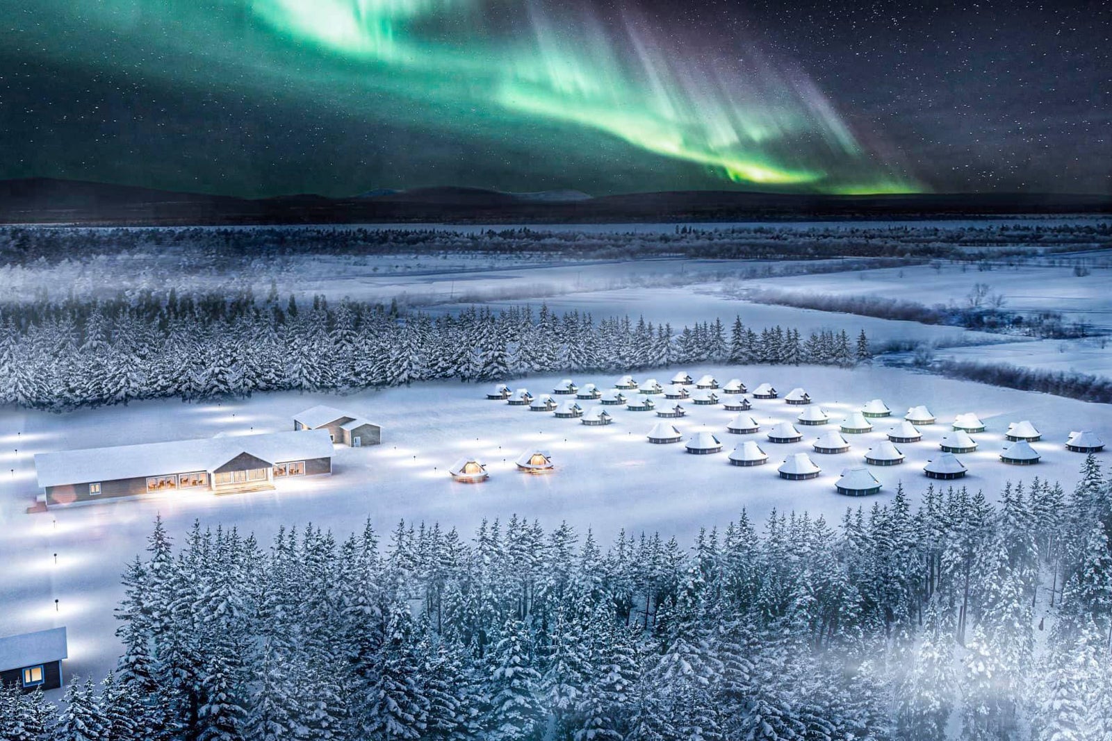 For an immersive travel experience under the Aurelius Borealis, visit the Northern Lights Village in Levi, Finland. The glass-roofed, cozy cabins allow for the ultimate viewing experience under the stunning night sky. From husky safaris to reindeer sledding to snowmobiling to simply relaxing in your glass-roofed room to view the colorful lights in the sky, this unique winter snow experience is unlike any other.