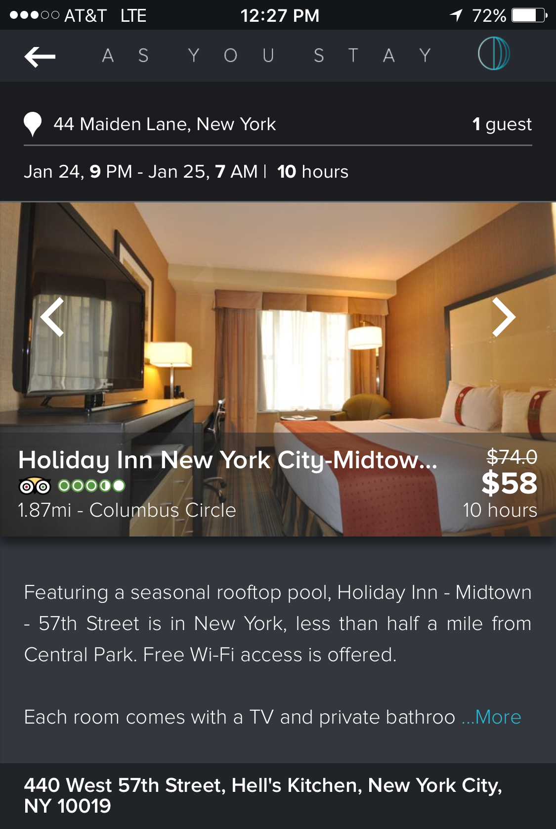 These ended up coming out to the same price, so depending on how much time you need at the hotel, you could book your stay either way. The As You Stay app could also be a useful tool for finding hotels and comparing prices in a given area, giving you all the available options so you can make a more informed decision.