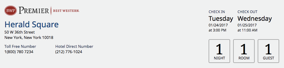 The total cost (before taxes) of booking directly through the Best Western website for a stay from January 24 at 3:00pm to January 25 at 11:00am (standard hotel check-in and check-out times): $95
