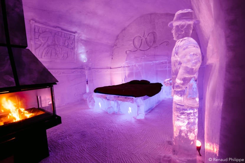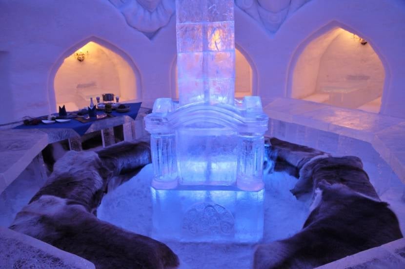 How cold is it? The rooms have a constant temperature of 28 degrees Fahrenheit and the ice-carved accommodations come with high-quality sleeping bags and reindeer skins to keep guests comfortable.