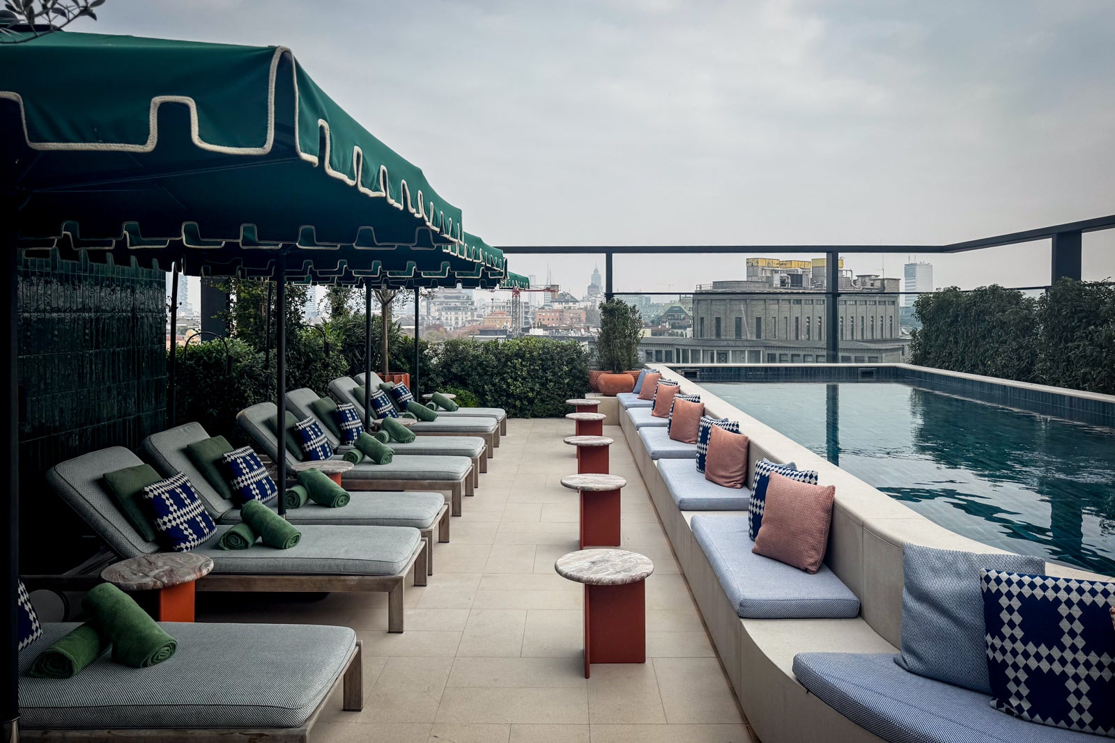 Not to be missed is the sleek lobby bar and all-day lounge, Living, as well as the heated rooftop pool with skyline views. But the real showstopper is dinner at the hotel’s rooftop restaurant, Etereo, which serves Milan classics like mondeghili meatballs and Milanese risotto, best enjoyed with a glass of Chianti while taking in panoramic views of the Duomo.