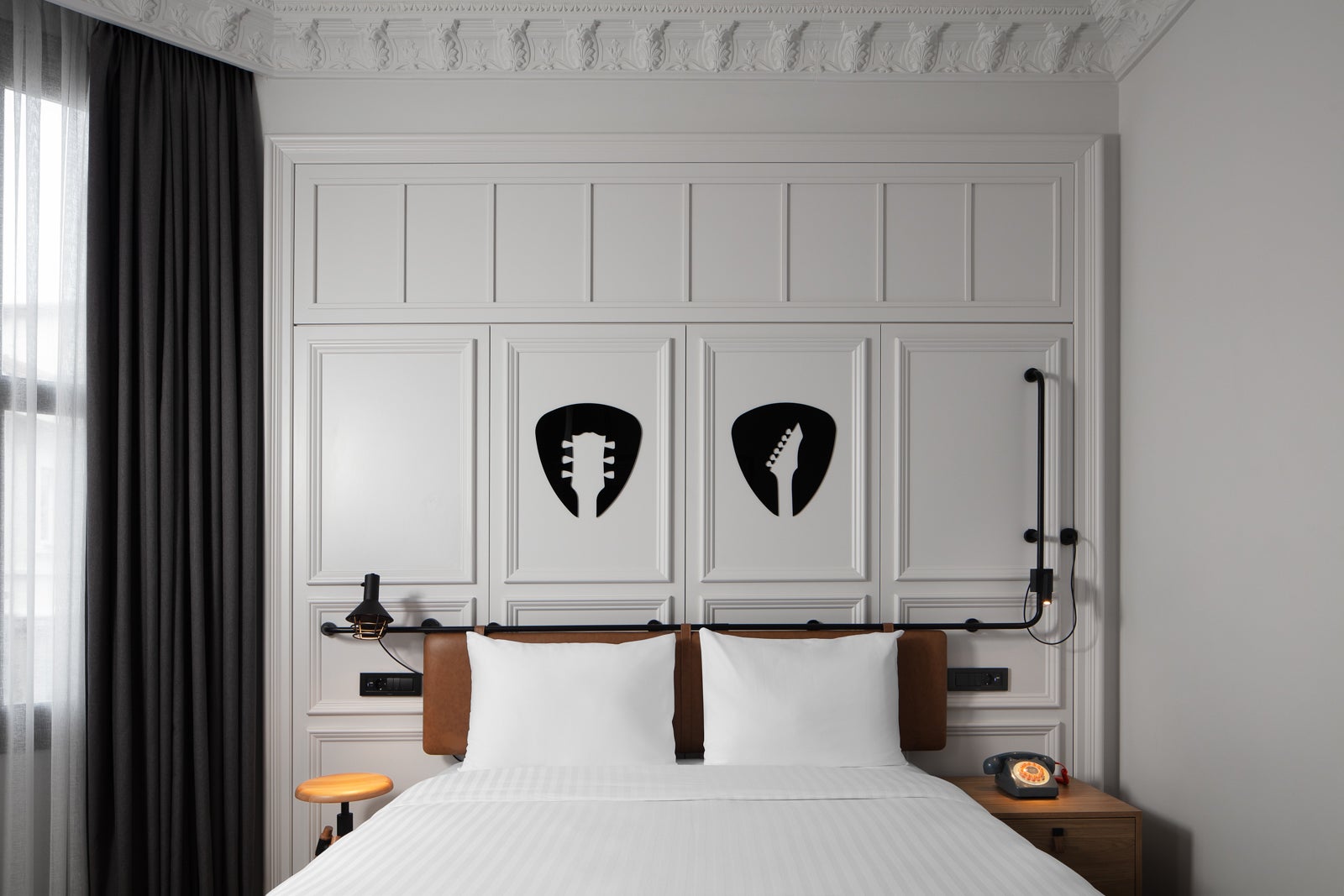 You know a hotel takes its art collection seriously (and why shouldn’t this one, with masterpieces by Frank Stella and Frederik Molenschot numbering among its pieces?) when it has a vending machine purveying tongue-in-cheek miniature sculptures by Casper Braat, not to mention rotating exhibits from the Nxt Museum.