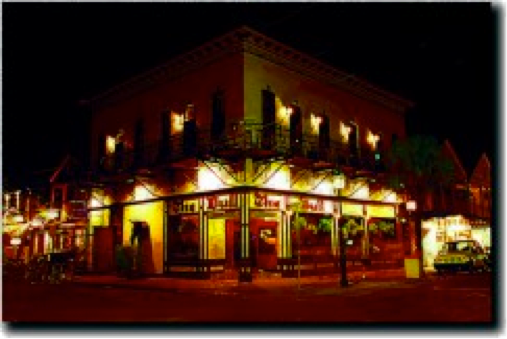 The Bull (downstairs) and Whistle (upstairs) Bar along Duval Street comes alive at night.