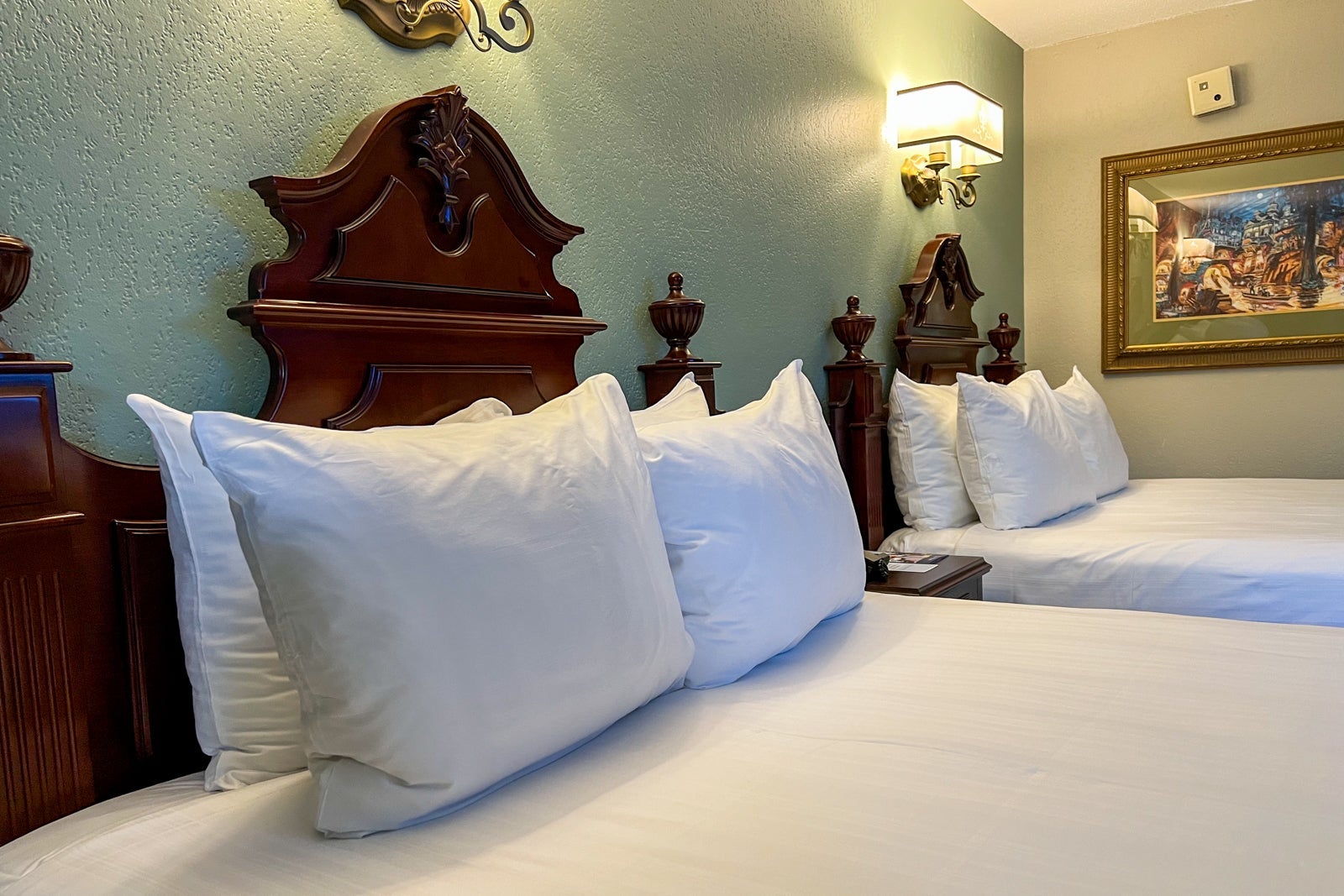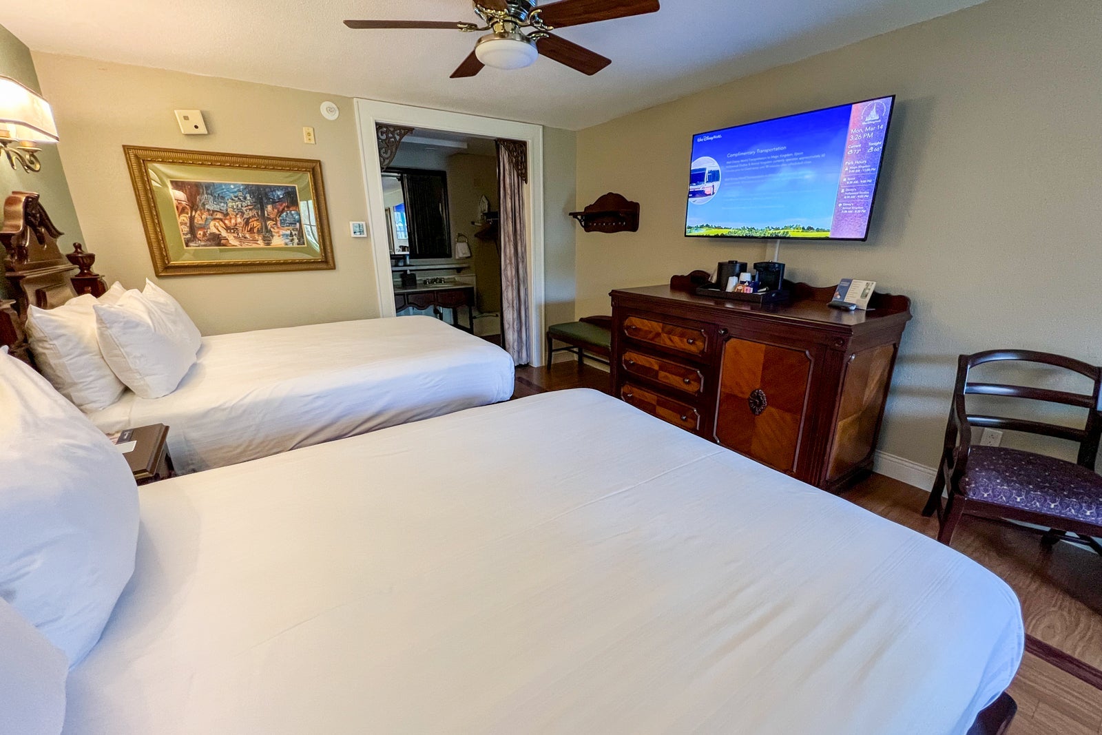 There are two queen beds in most of the rooms, plus typical amenities like flat-screen TVs and basic coffee makers.