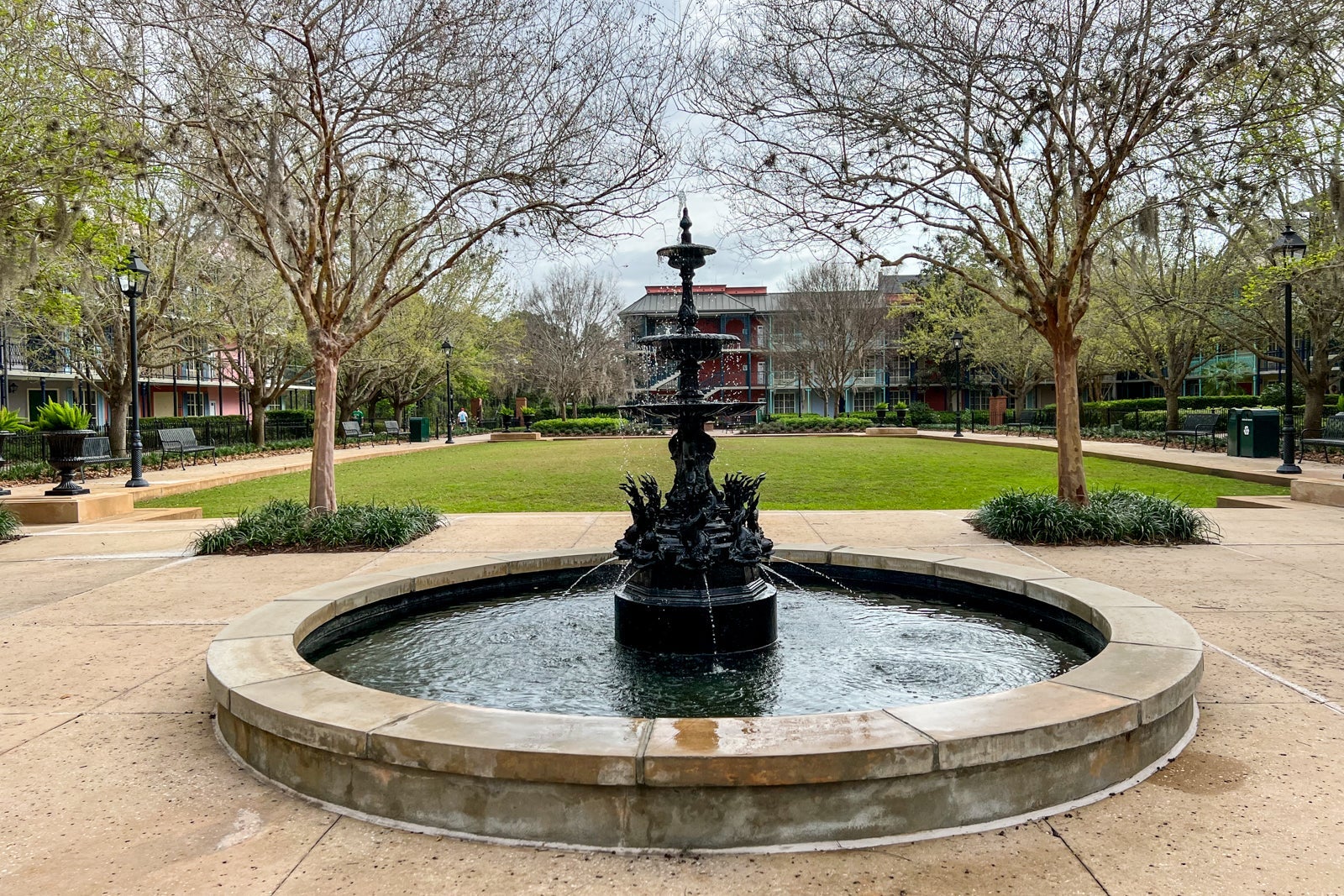 Mossy trees and colorful buildings clad with New Orleans-inspired wrought-iron railings greet you the moment you step foot on the property. And as you make your way inside the lobby, your worries quickly float away as the soothing sound of the bubbling fountain fills your ears.