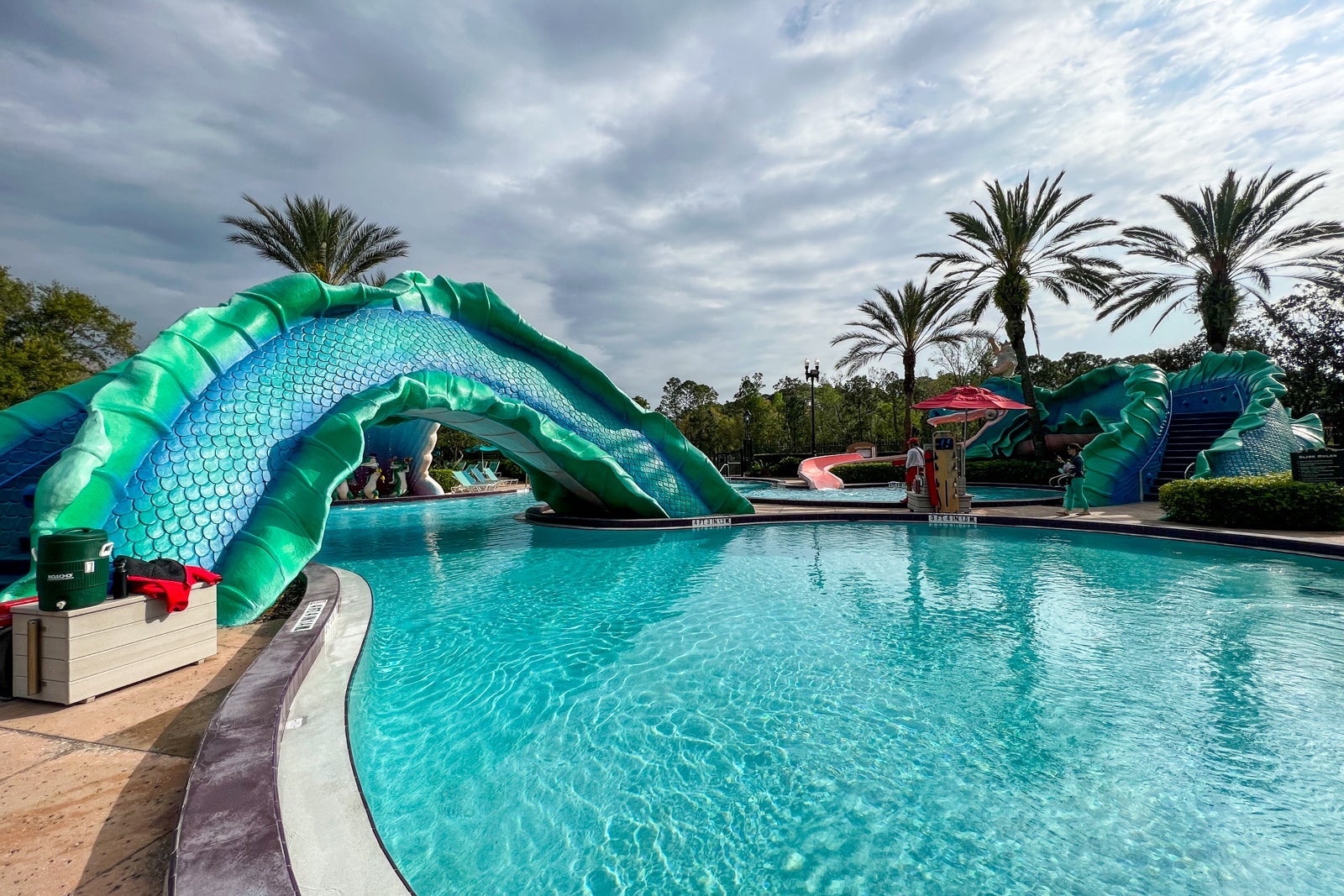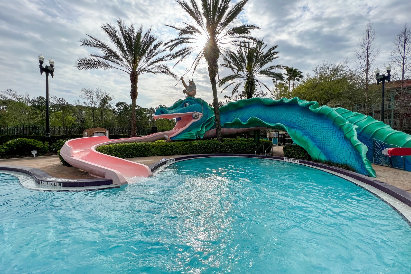 You can also use the pools at Riverside if you want a change of scenery. The main pool complex in this section is accessible via three wooden bridges and features a larger waterslide that measures 95 feet long.