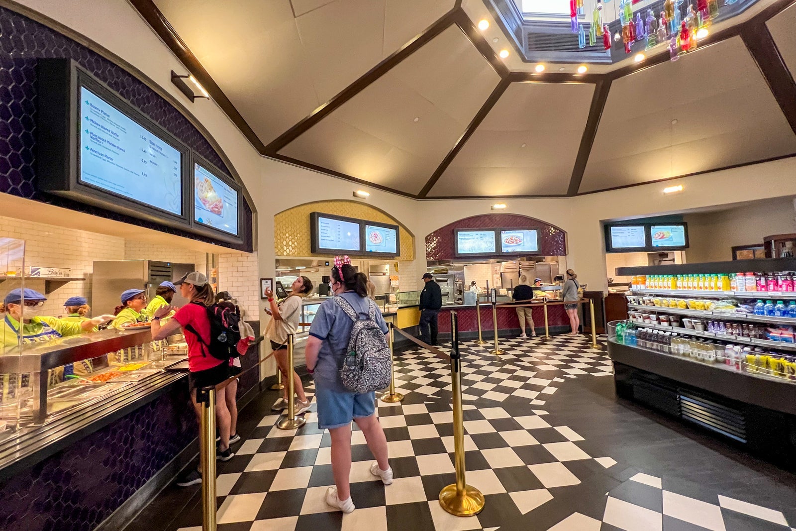 Next to Scat Cat's Club is the Sassagoula dining area. This Mardi Gras-themed food court features a collection of stations that serve everything from typical American fare (think: chicken fingers and fries for $10.49 and chili in a bread bowl for $9.99) to Creole classics like jambalaya ($10.99) and gumbo ($8.99).