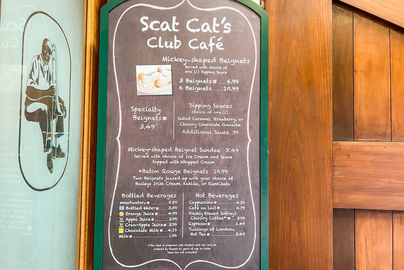 Some versions come infused with booze or drizzled with chocolate or a raspberry sauce, but my go-to is always the classic Scat Cats Beignets, three fluffy Mickey beignets topped with powdered sugar. An order will set you back $6.99, so savor them with a friend or save one for later.